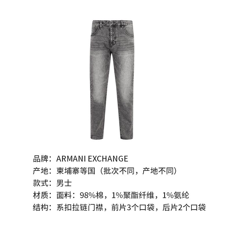 自营Armani Exchange 阿玛尼 【新品】男士棉质灰色AX低腰修身版牛仔裤长裤 3DZJ16 Z1KQZ 0204