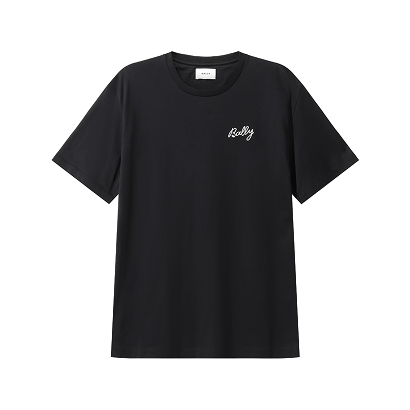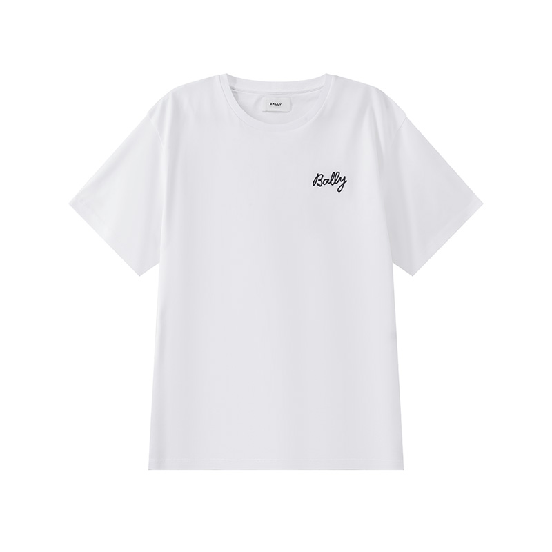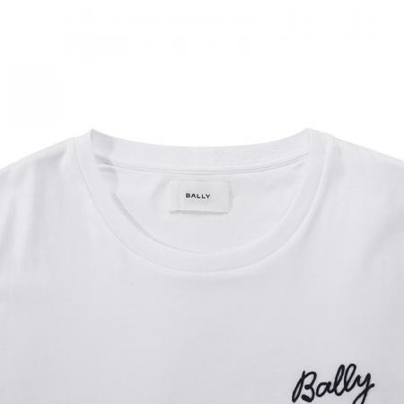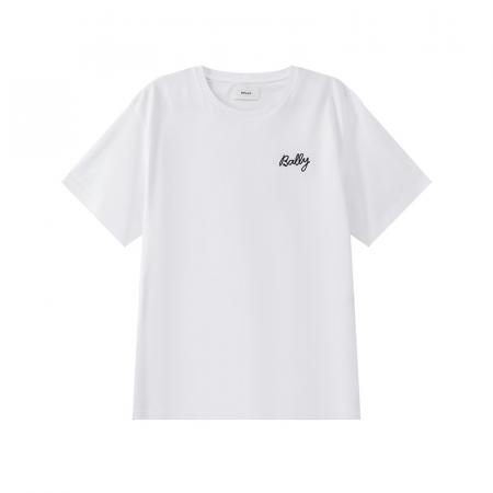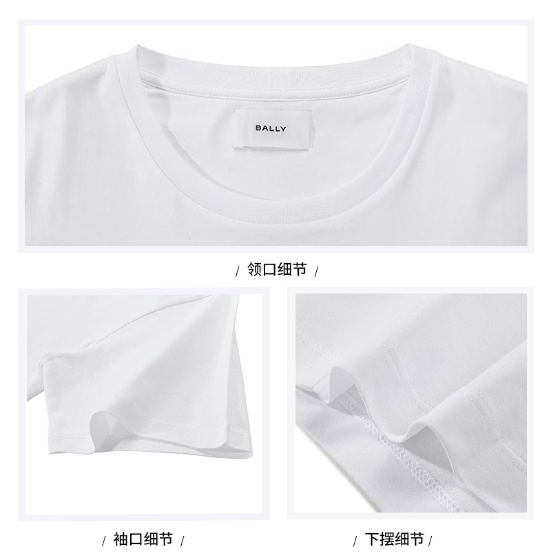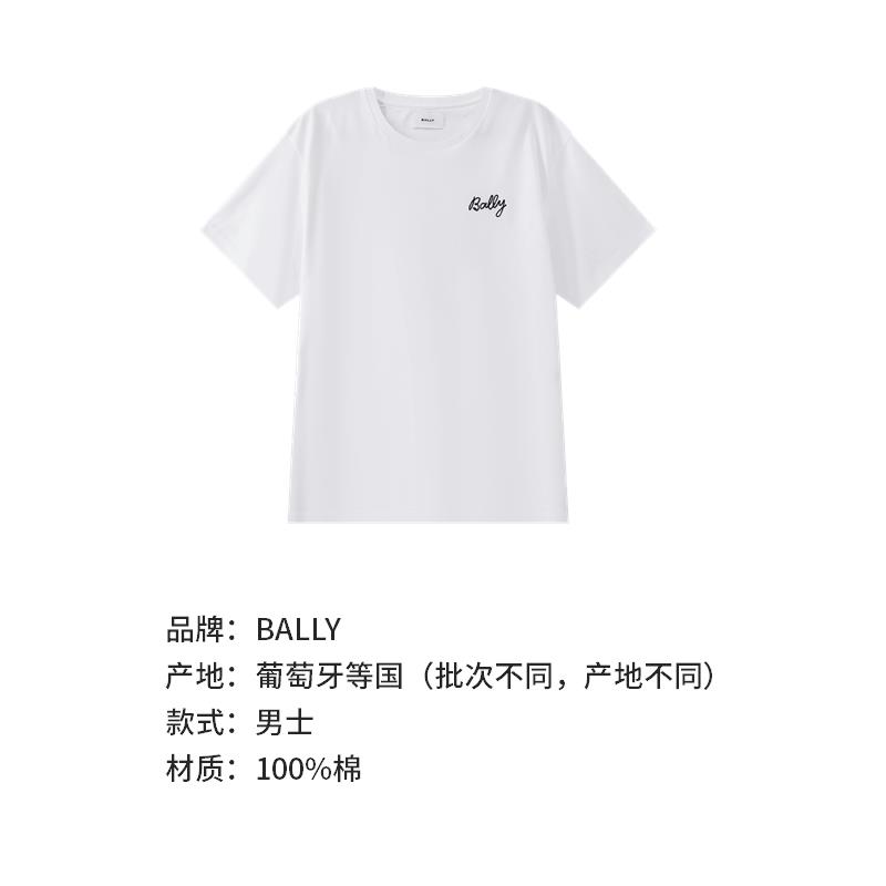 自营Bally 巴利 男士棉质白色标识刺绣圆领短袖T恤 M5BAC31F 01 6306530