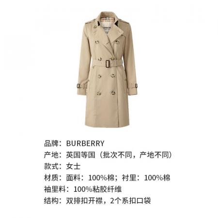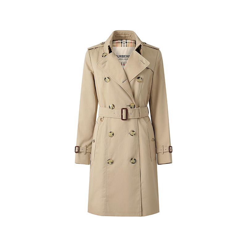 自营Burberry 博柏利 女士蜂蜜色中长款修身双排扣切尔西版型Heritage Trench风衣外套 80794041