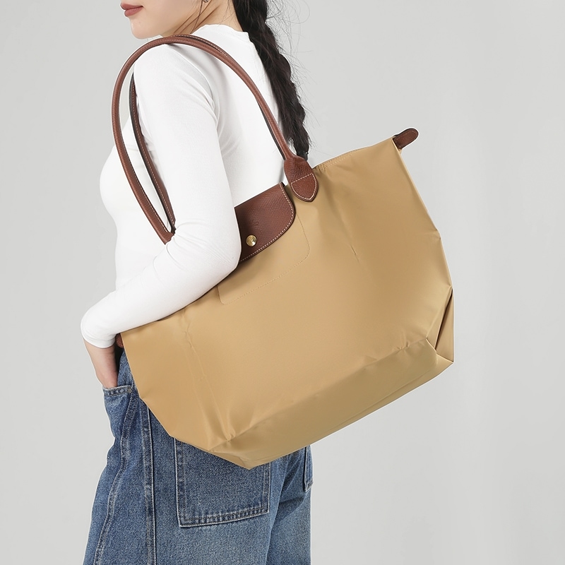 自营Longchamp 珑骧 新品 女包 女士Le Pliage Original系列织物沙丘色大号长柄可折叠饺子包托特包购物袋手提单肩包 1899 089 P86