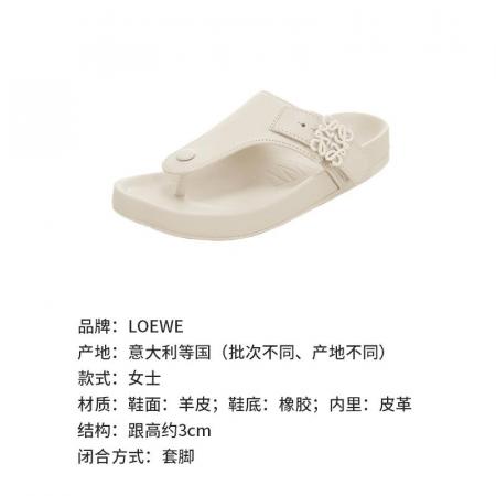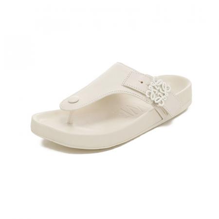 自营Loewe 罗意威 【新品】女士羊皮奶白色Anagram夹脚凉鞋拖鞋凉拖人字拖 L814465X59 2100