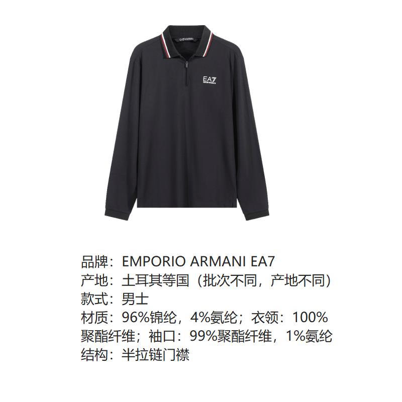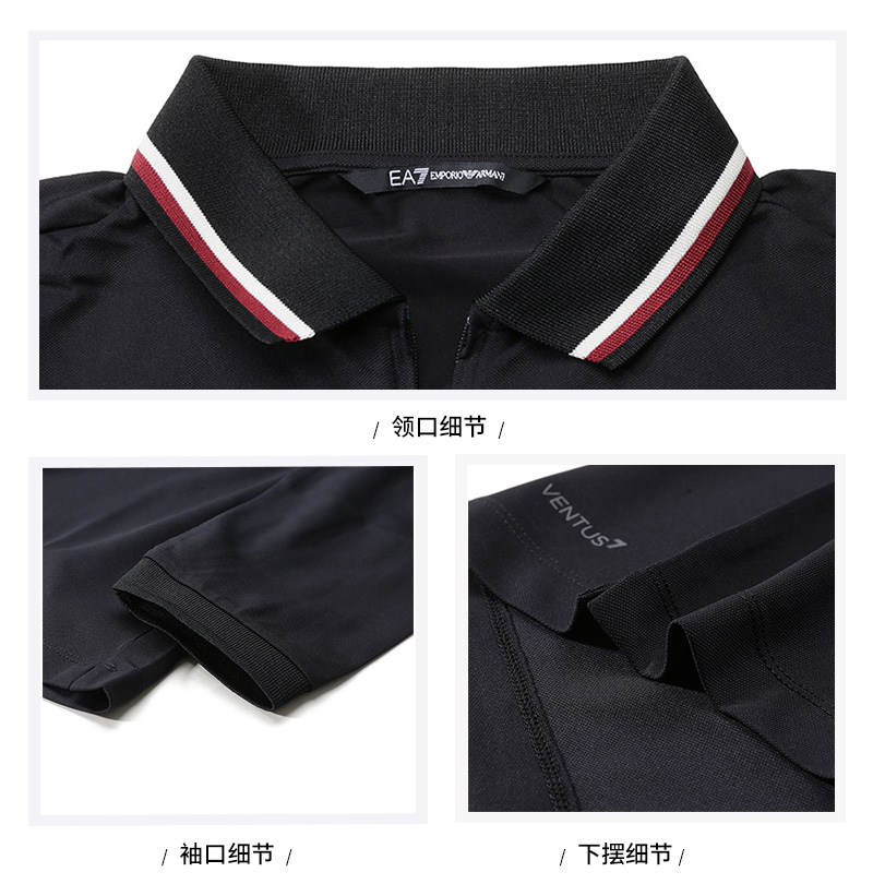 自营EA7 阿玛尼【新品】 男士黑色LOGO胶印VENTUS7长袖高尔夫POLO衫 6DPF18 PJ27Z 1200