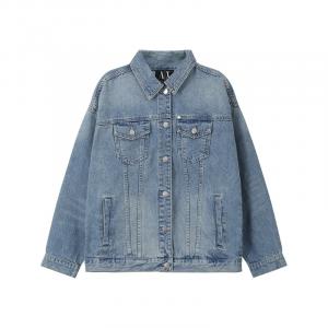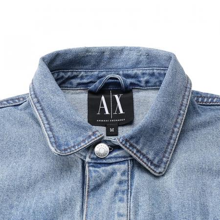 自营Armani Exchange 阿玛尼【新品】 男士棉质牛仔靛蓝色复古做旧短款翻领牛仔服薄夹克外套 8NZBP4 Z2P1Z 1500