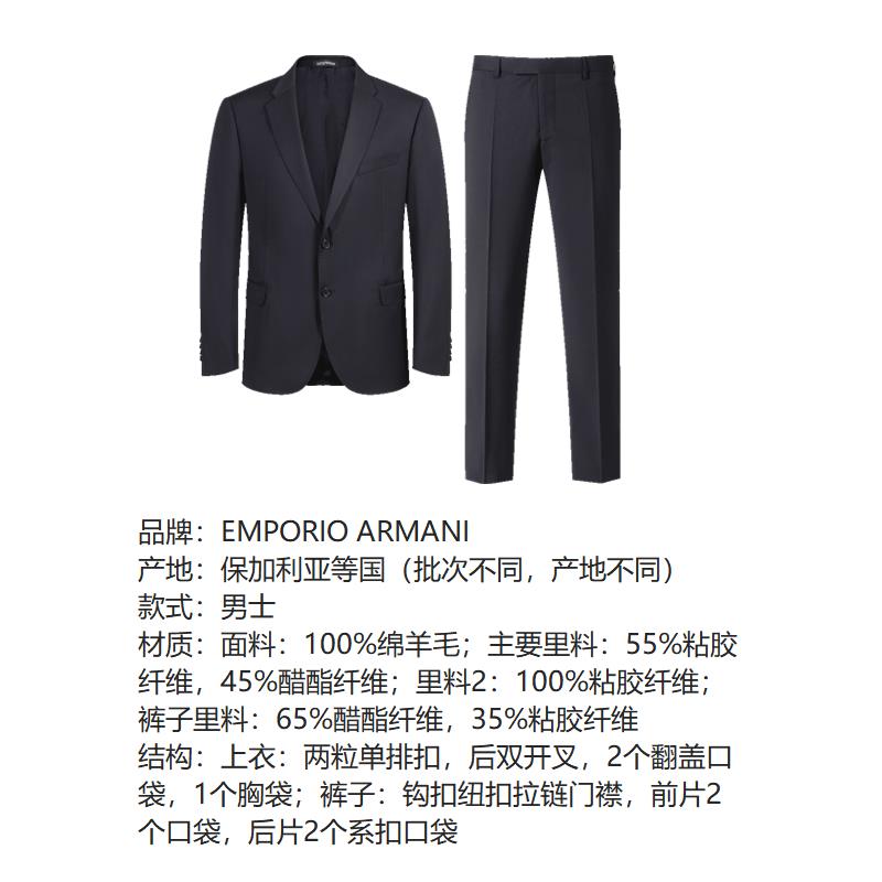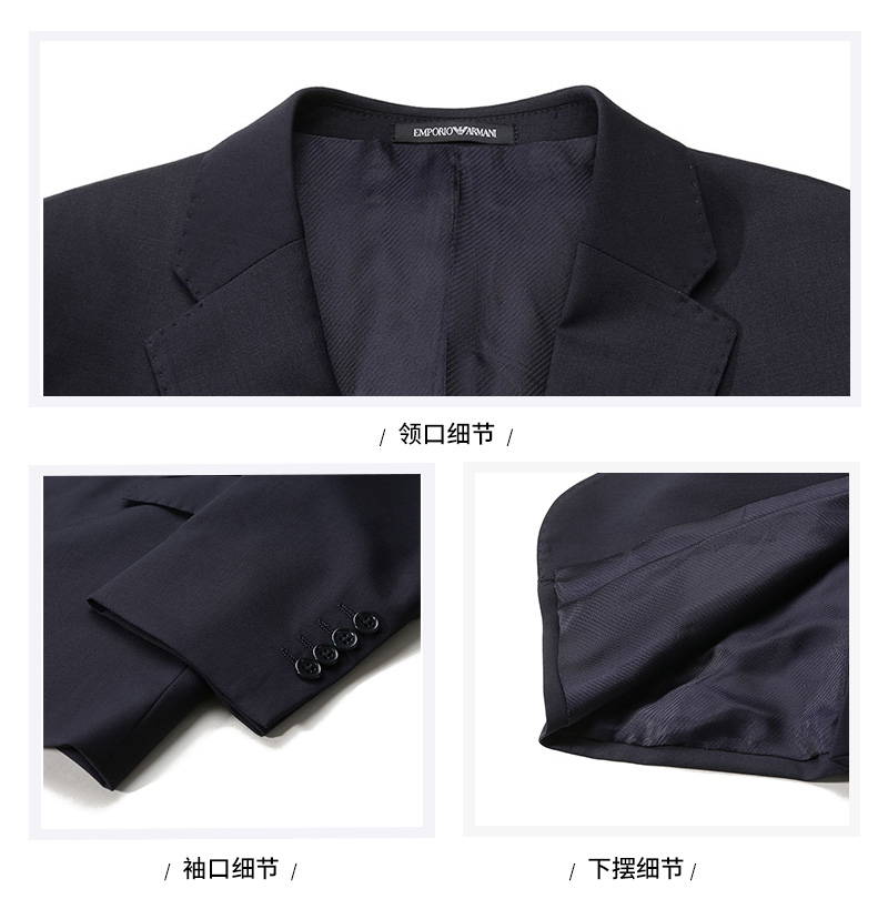 自营Emporio Armani 阿玛尼 男士夜蓝色两粒单排扣商务西装西裤长裤西服套装 EM000478 TE10155 UB081