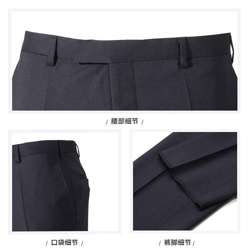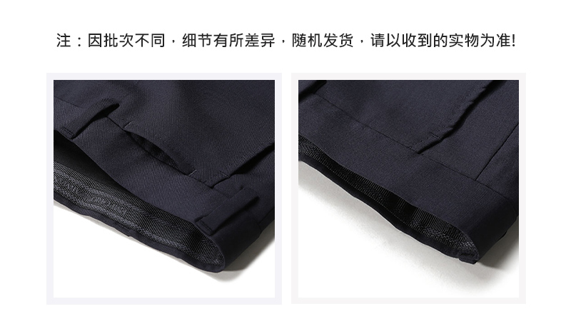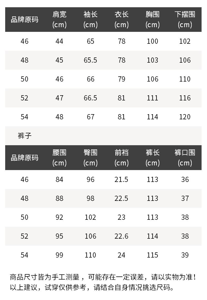 - 结构:上衣:两粒单排扣,后双开叉,2个翻盖口袋,1个胸袋;裤子:钩扣纽扣拉链门襟,前片2个口袋,后片2个系扣口袋