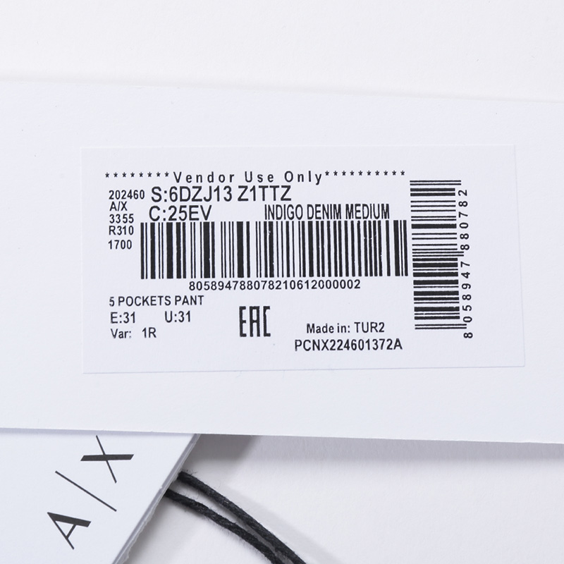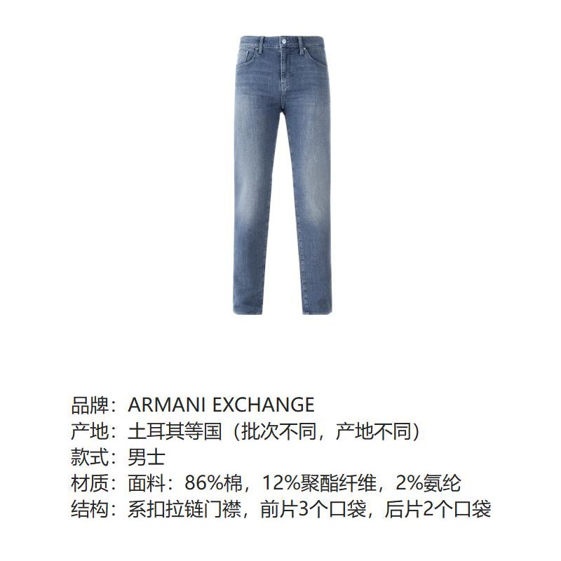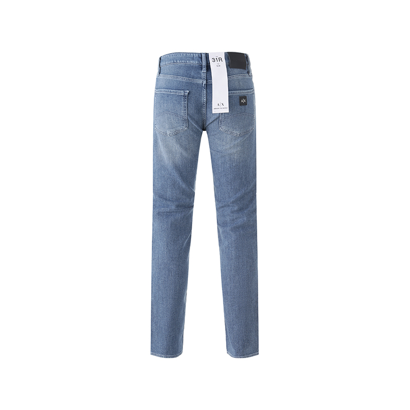 - 此款 ARMANI EXCHANGE 牛仔裤采用微弹斜纹牛仔布制成,质地清新而舒适,立体修身直筒版型,修饰腿部线条,令整体穿搭尽善尽美。通过质感水洗工艺,通体呈现渐变效果,个性错落猫须点缀,打造复古休闲外观。经典五口袋裤型,日常简约,轻松搭配。
