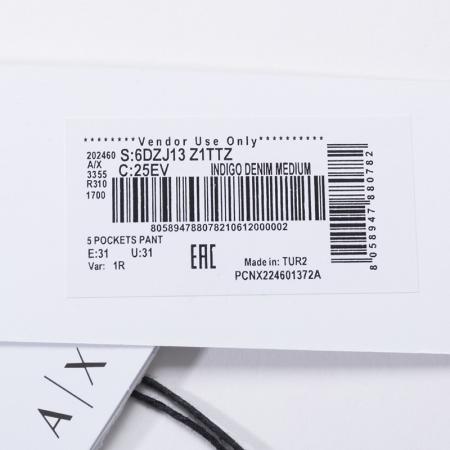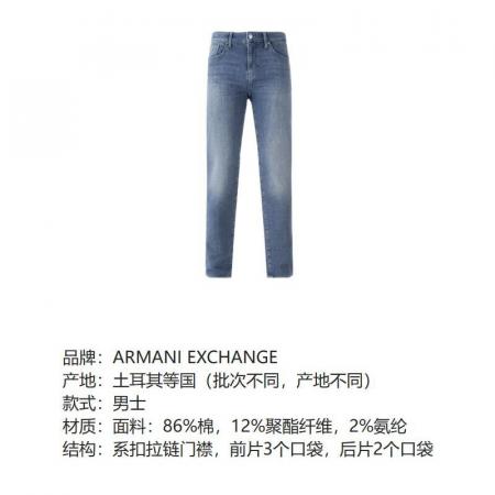 自营Armani Exchange 阿玛尼【新品】 男士棉质蓝色AX低腰复古修身直筒窄脚牛仔裤长裤 6DZJ13 Z1TTZ 25EV