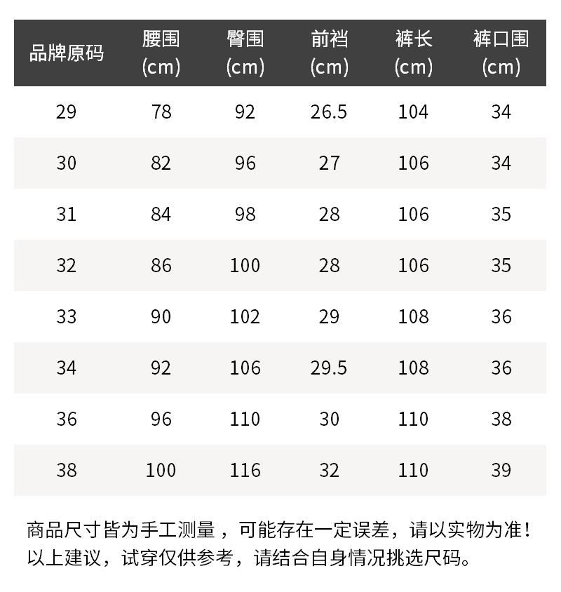- 尺码说明