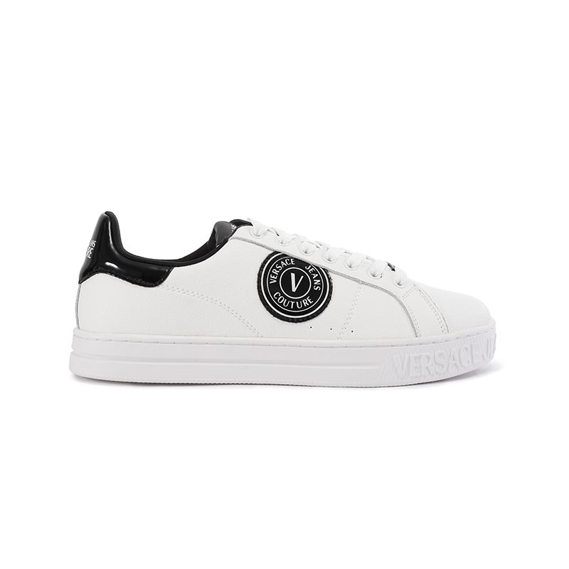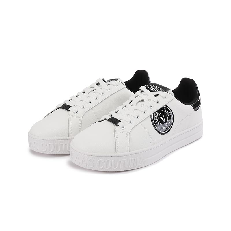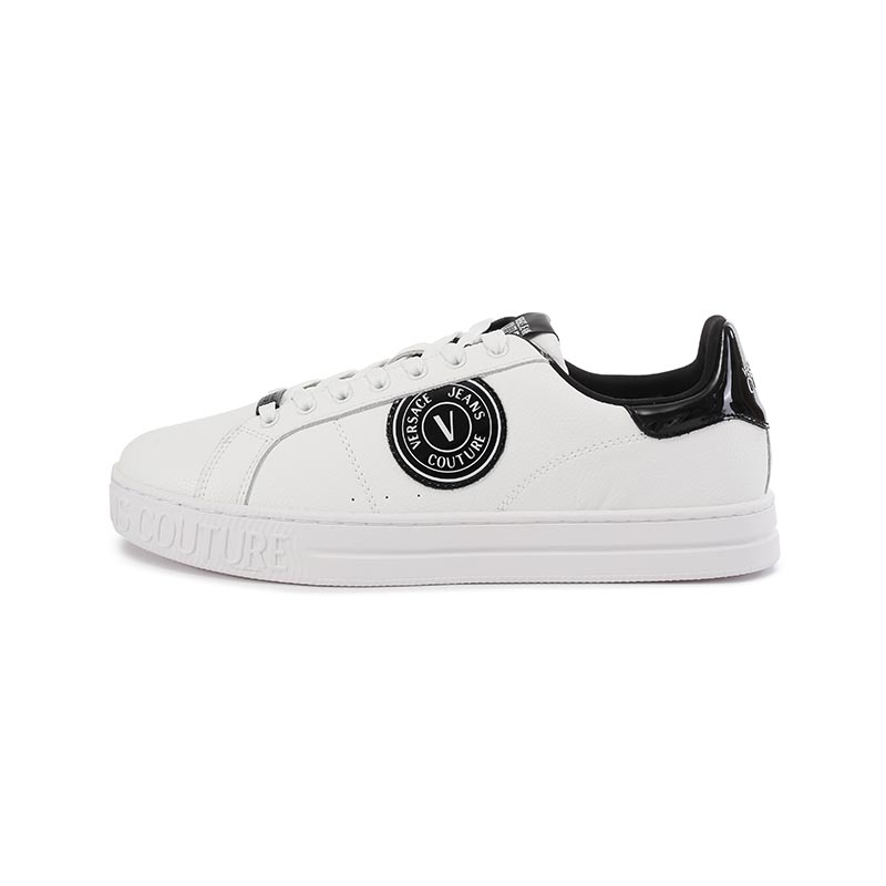 自营Versace Jeans Couture 范思哲【新品】 男士Court 88系列牛皮革/聚氨酯白色黑尾V字徽章系带休闲运动鞋板鞋小白鞋 76YA3SK1 ZPA59 L02