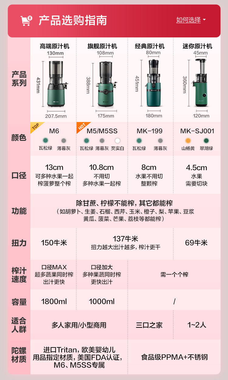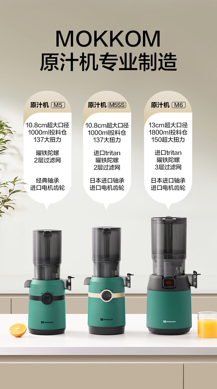 磨客(mokkom) MOKKOM磨客榨汁机汁渣分离原汁机家用全自动渣汁慢磨口径榨果汁M5-10.8CM