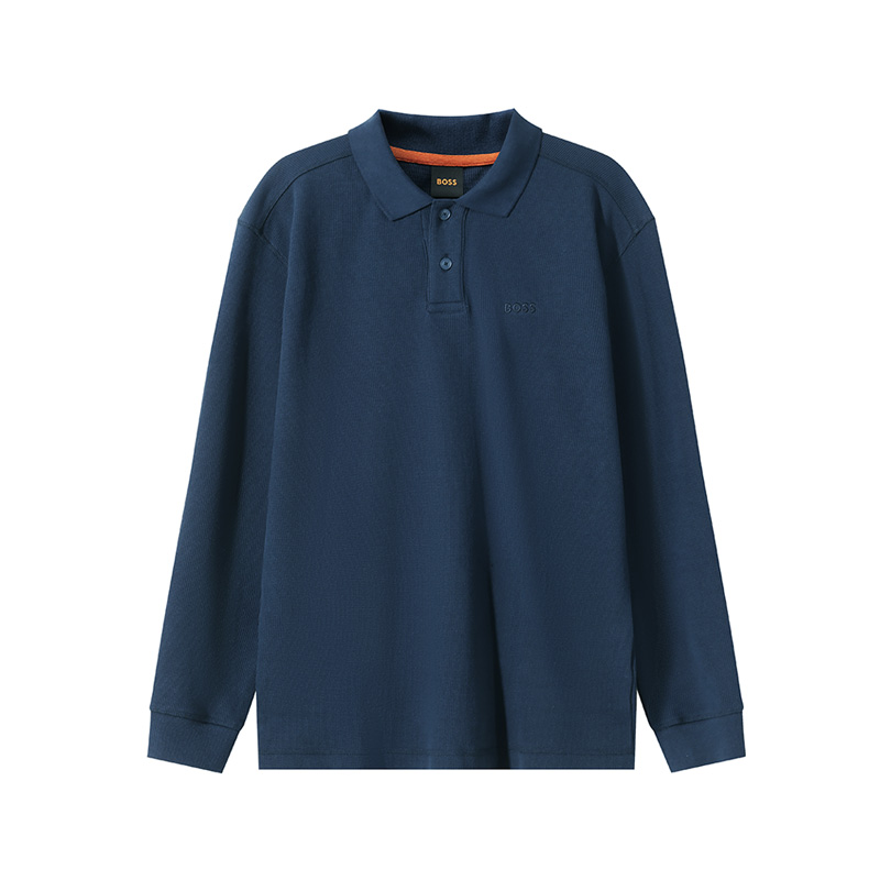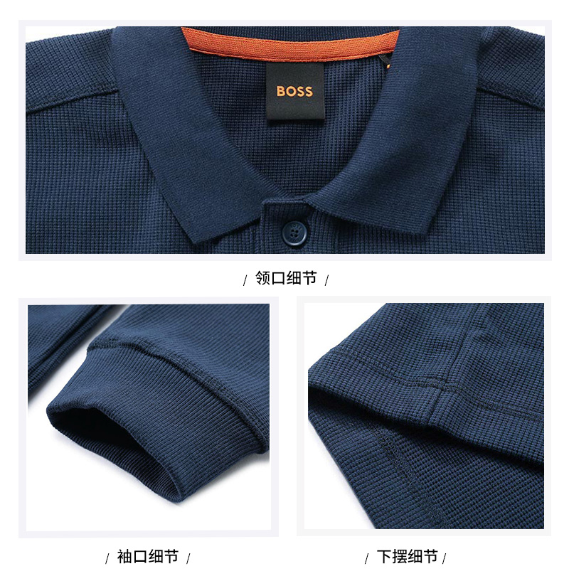 自营Hugo Boss 雨果博斯 【新品】 男士orange系列棉质自然蓝色徽标刺绣环保面料华夫格纹理长袖POLO衫 50520710 464