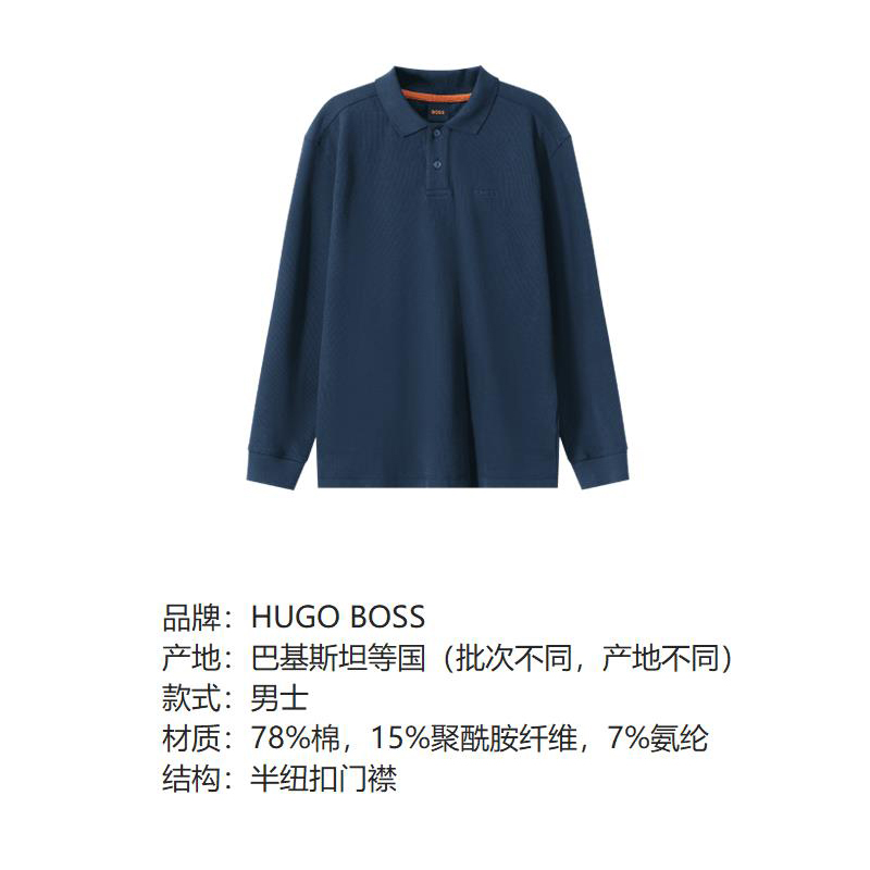 HUGO BOSS长袖POLO衫环保面料舒适百搭