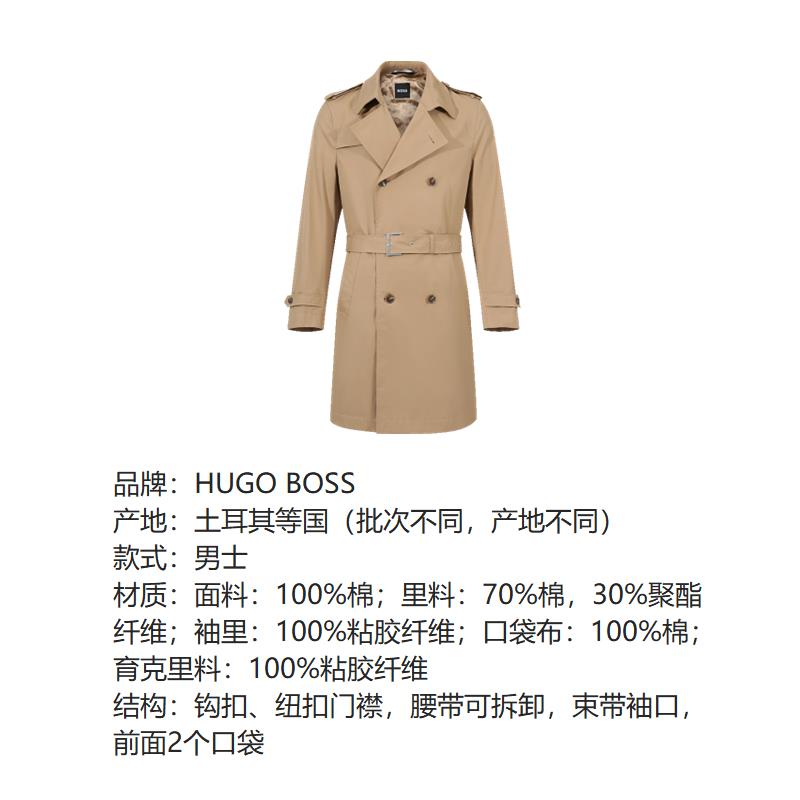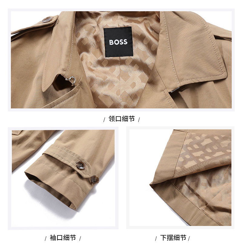 自营Hugo Boss 雨果博斯【新品】 男士black系列褐色中长款双排扣风衣大衣外套 50509585 282