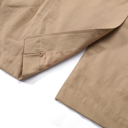 - 结构:钩扣、纽扣门襟,腰带可拆卸,束带袖口,前面2个口袋