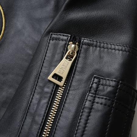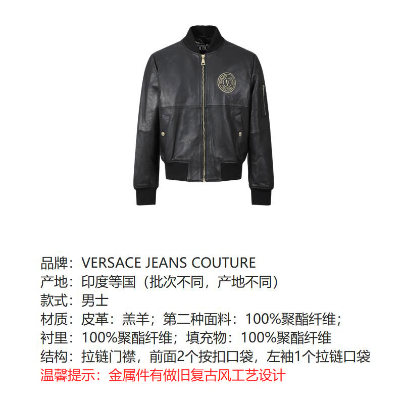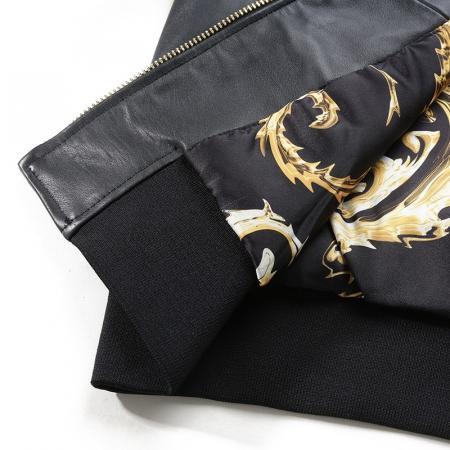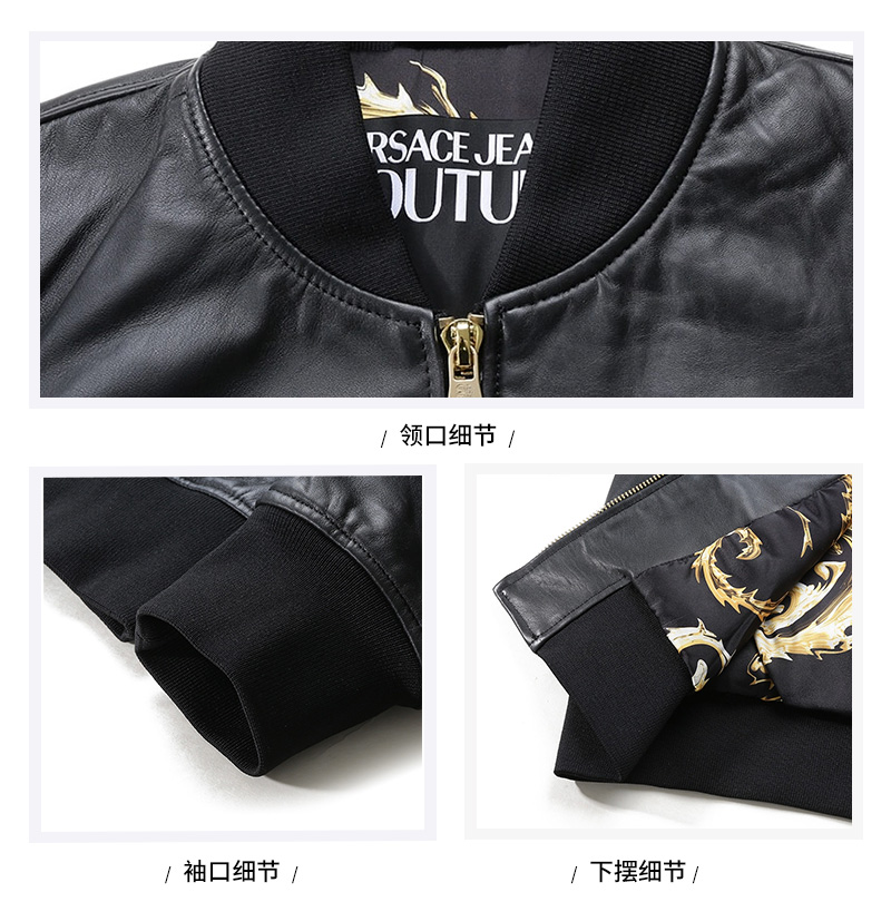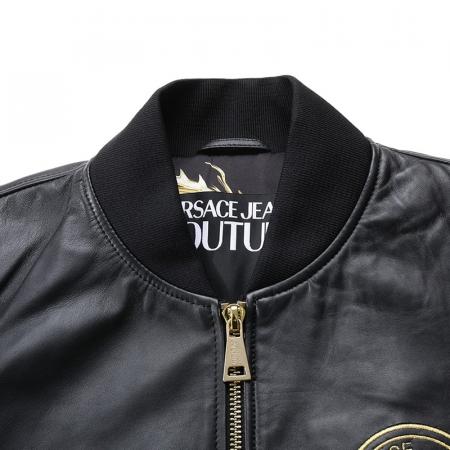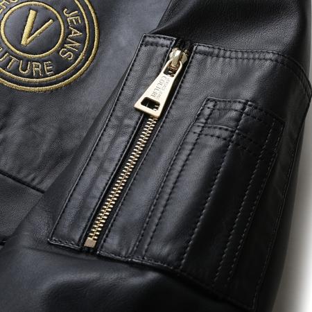 自营Versace Jeans Couture 范思哲【新品】 男士黑色V字徽标刺绣复古拉链短款夹棉皮衣夹克外套上衣 77GAVP06 CPPS3 G89