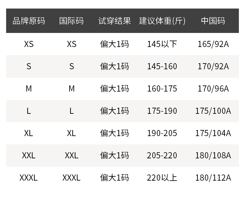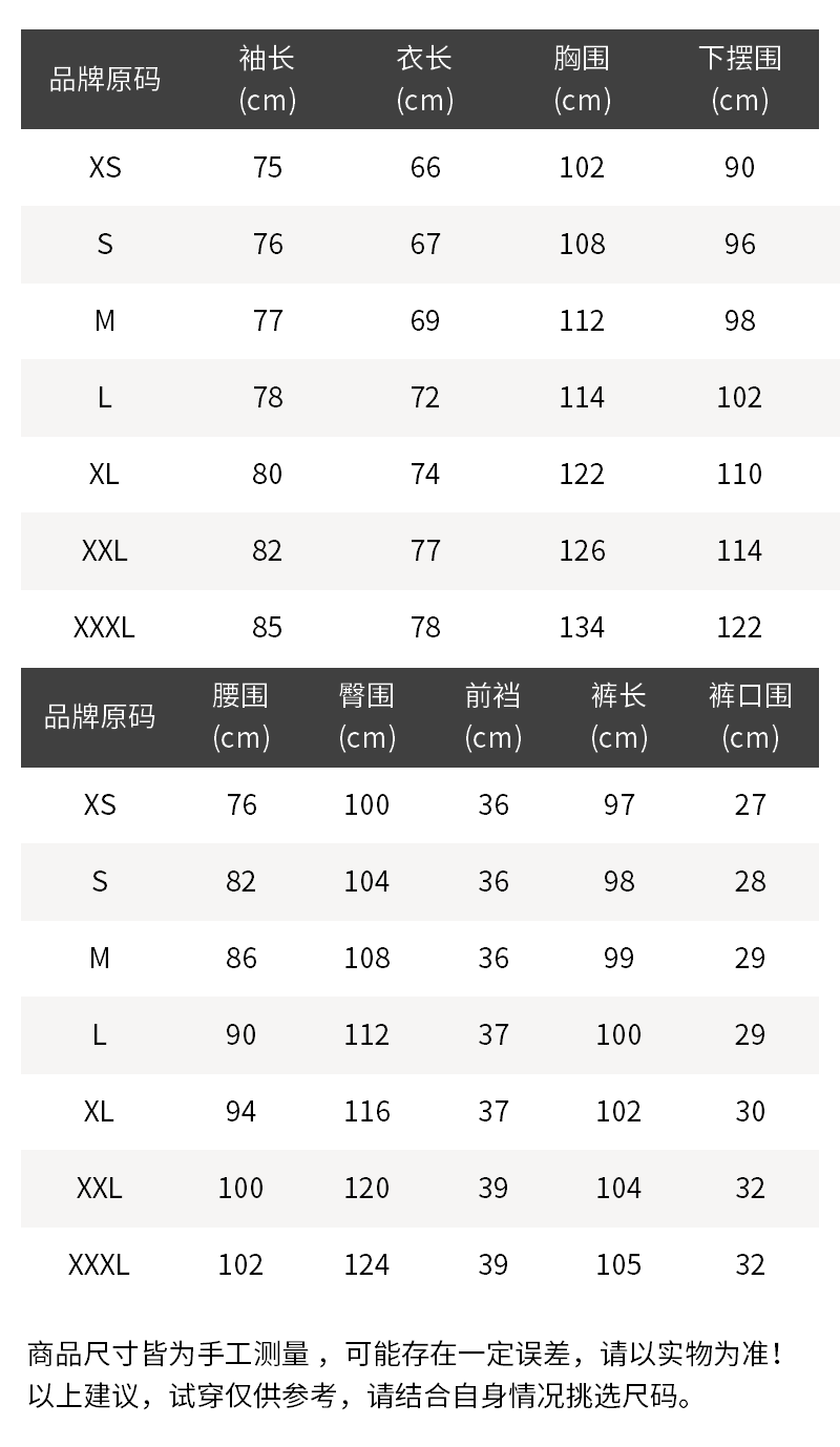 - 尺码说明