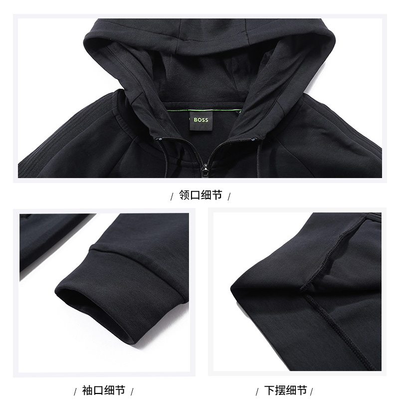 自营Hugo Boss 雨果博斯【新品】 男士green系列蓝黑色小徽标胶印运动套装连帽卫衣运动衫运动裤卫裤套装 50519395 001