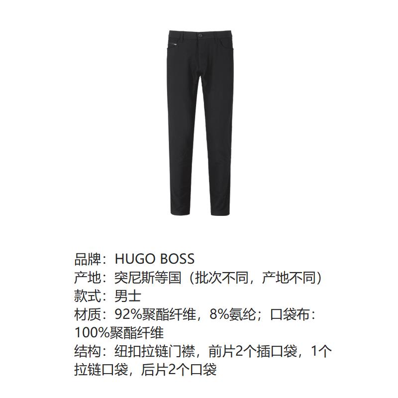 自营Hugo Boss 雨果博斯 新品 男士green系列黑色低腰修身版休闲裤长裤 50495498 001