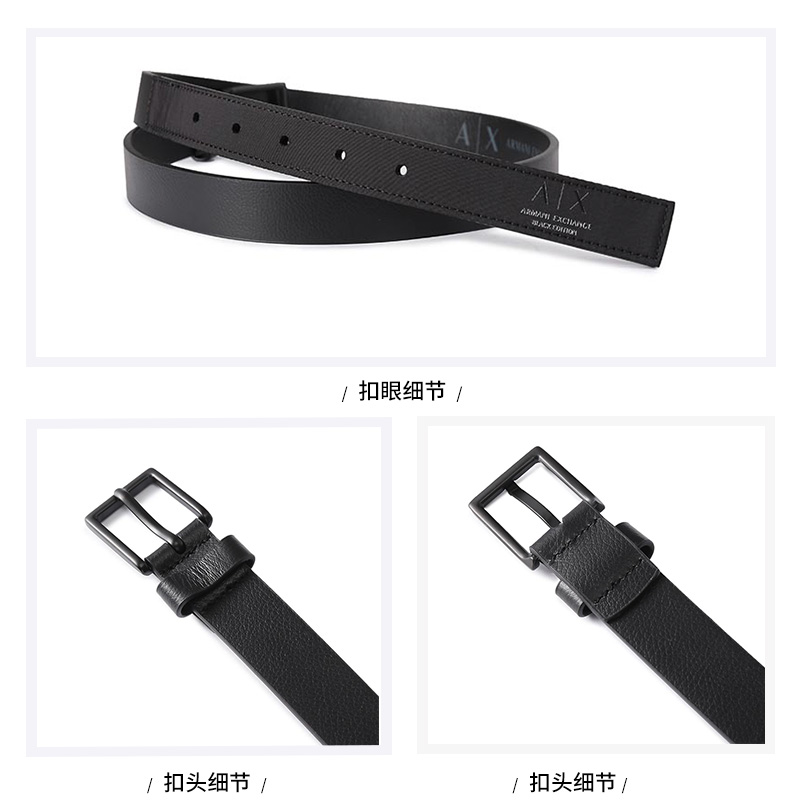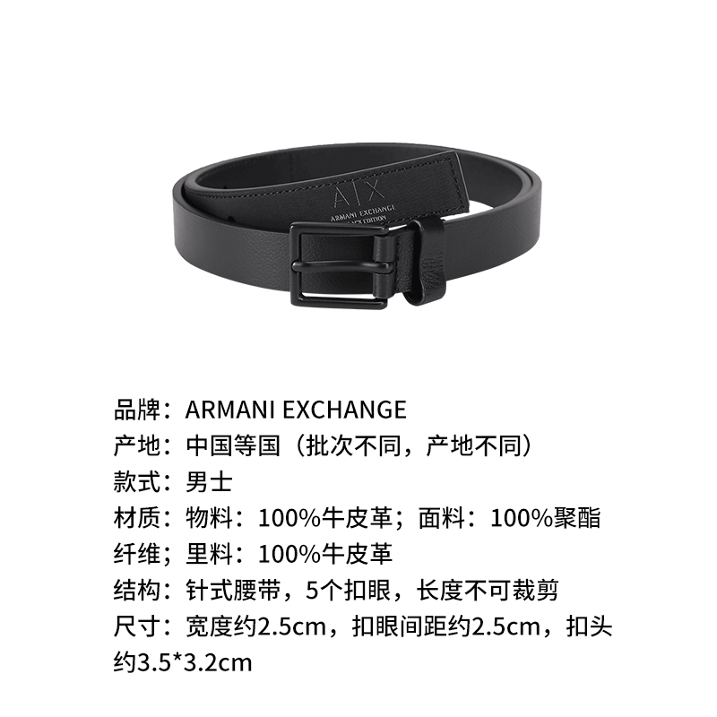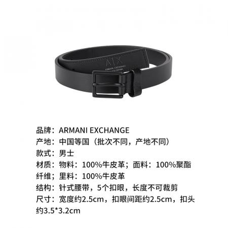 自营Armani Exchange 阿玛尼【新品】 男士黑色不可裁剪窄版皮带腰带2.5cm XM000109 AF12105 UC001