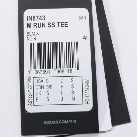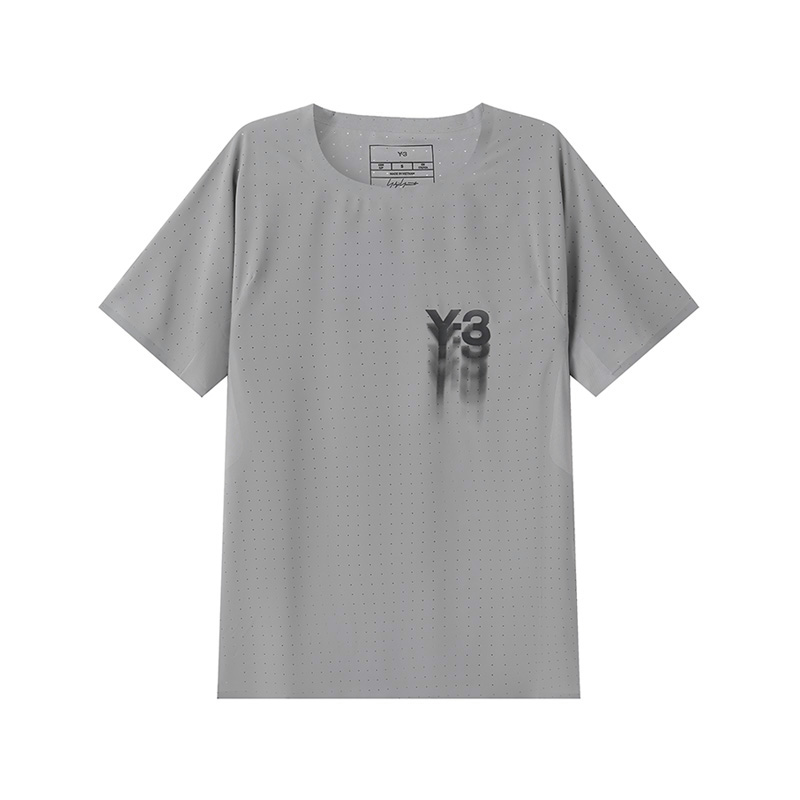 自营Y-3 【新品】 男士黑色LOGO胶印M RUN SS TEE圆领网眼背心汗衫运动T恤 IN8743