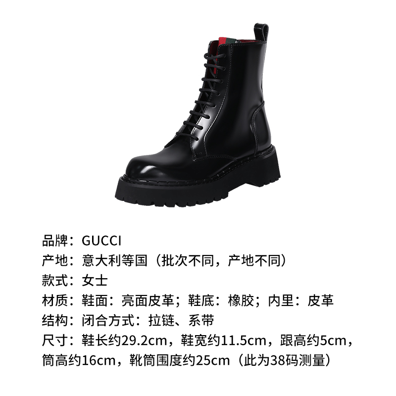 自营Gucci 古驰【新品】 女士亮面皮革黑色厚底马丁靴子短靴皮靴 794394 AADIX 1060