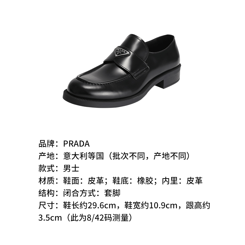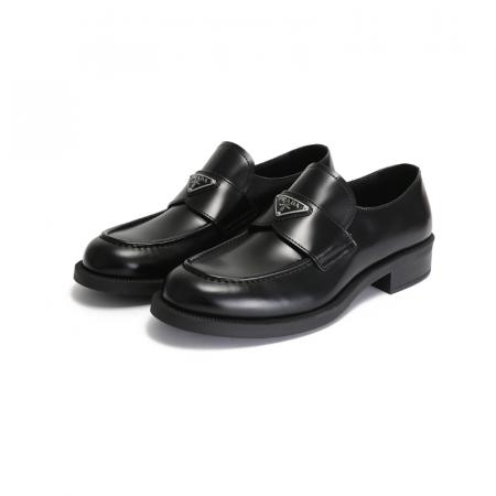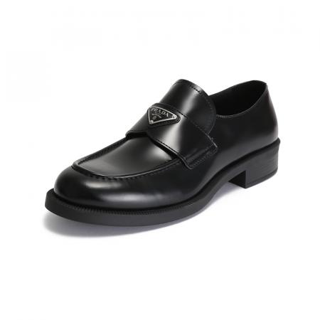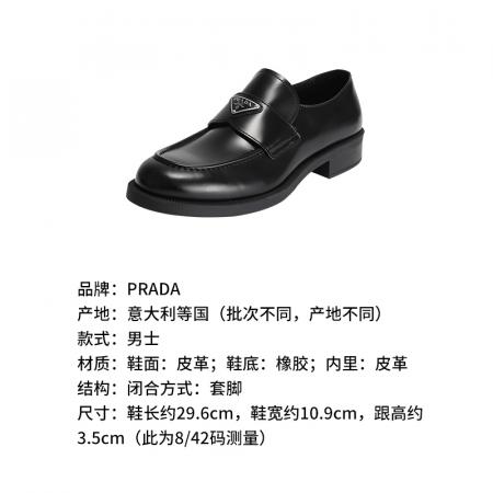 自营Prada 普拉达【新品】 男士皮革黑色三角形徽标厚底乐福鞋皮鞋单鞋 2DE145 055 F0002 F G000