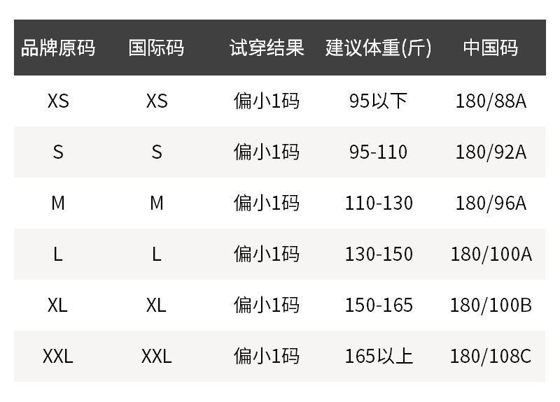- 尺码说明