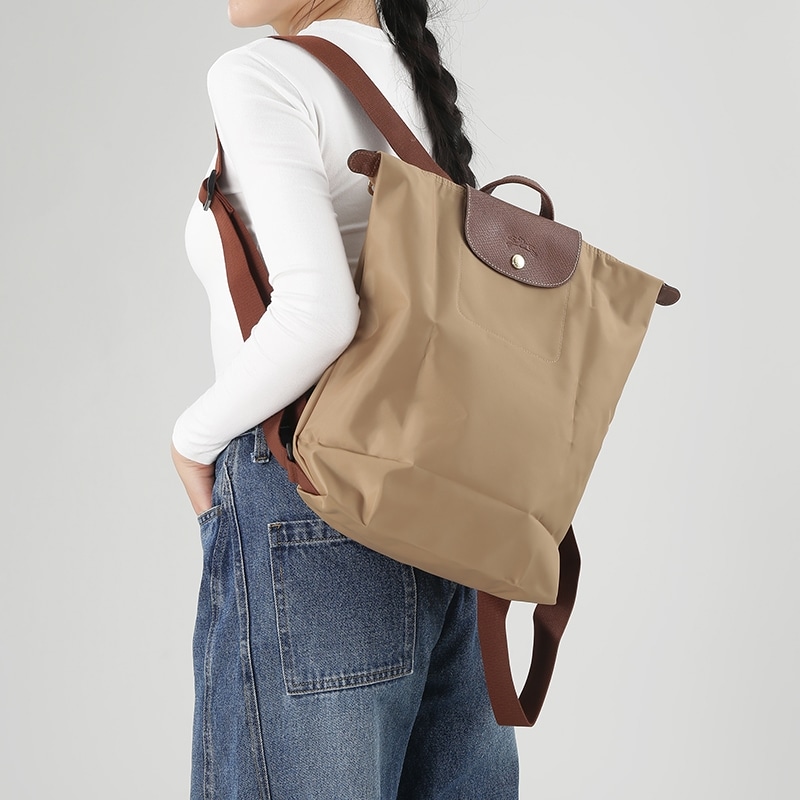 自营Longchamp 珑骧【新品】女包 女士Le Pliage Original系列织物/牛皮革沙丘色可折叠手提双肩背包 10284 089 P86