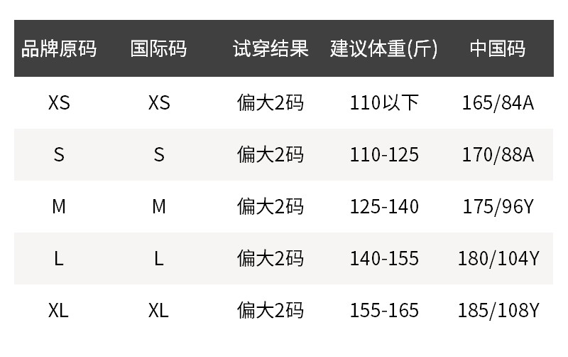 - 尺码说明