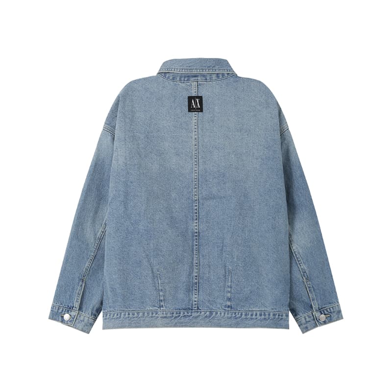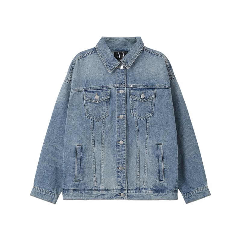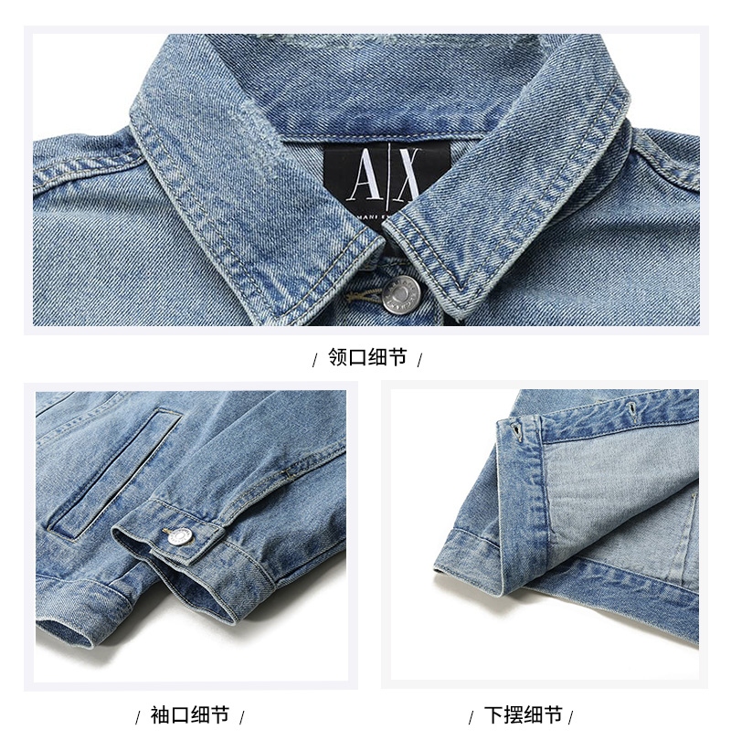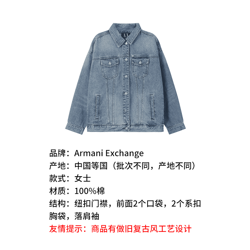 自营Armani Exchange 阿玛尼 新品 女士棉质牛仔蓝色复古做旧牛仔服夹克外套 8NYB34 Y4AAZ 150A
