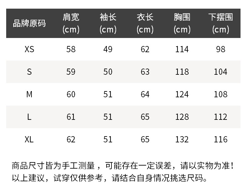 - 温馨提示:1.丢失包装及附件或拆除防损标签/吊牌时不予退换,敬请理解。2.批次不同,产地/细节有所不同,随机发货。3.所有尺寸皆为手工测量,存在1~3cm误差,请以实物为准!