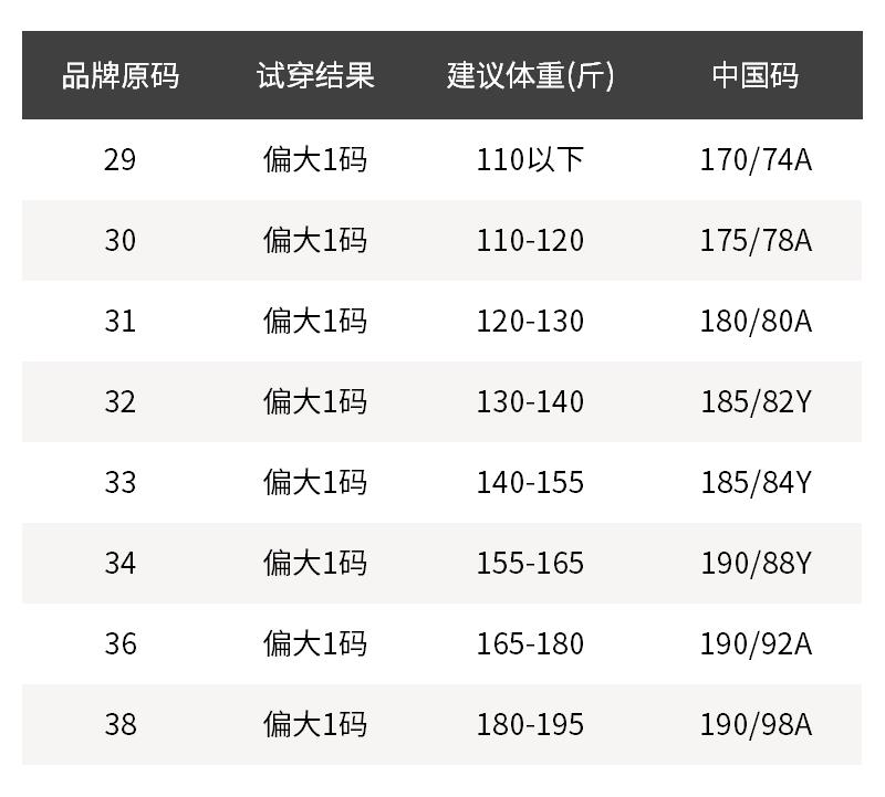 - 尺码说明