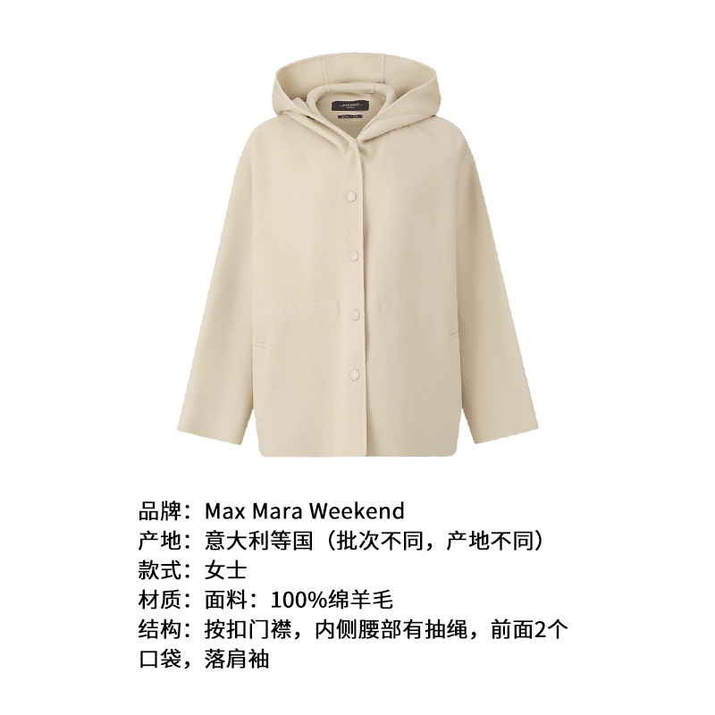 自营Weekend MaxMara 麦丝玛拉【新品】女士绵羊毛米色宽松版连帽上衣外套 GENNAIO 064 25086021