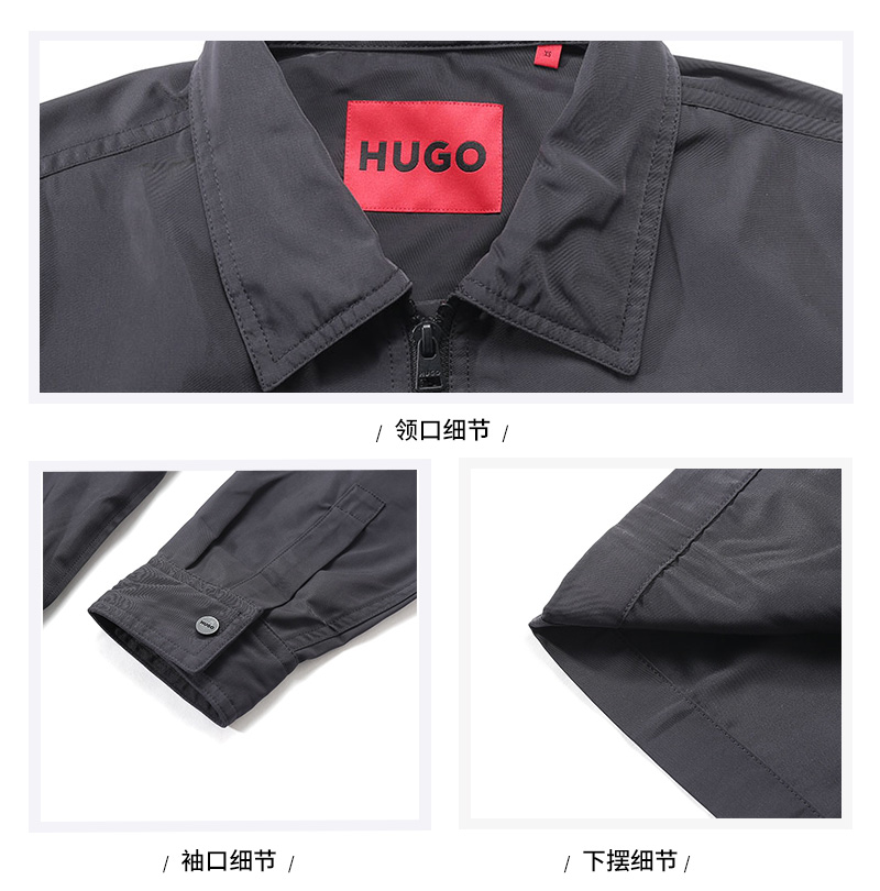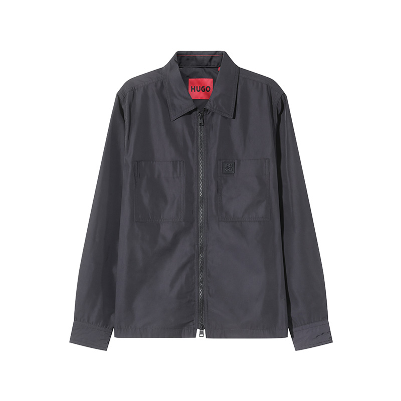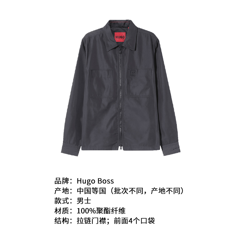 自营Hugo Boss 雨果博斯【新品】男士HUGO系列黑色堆叠风徽标贴片短款拉链衬衫式外套 50520058 001