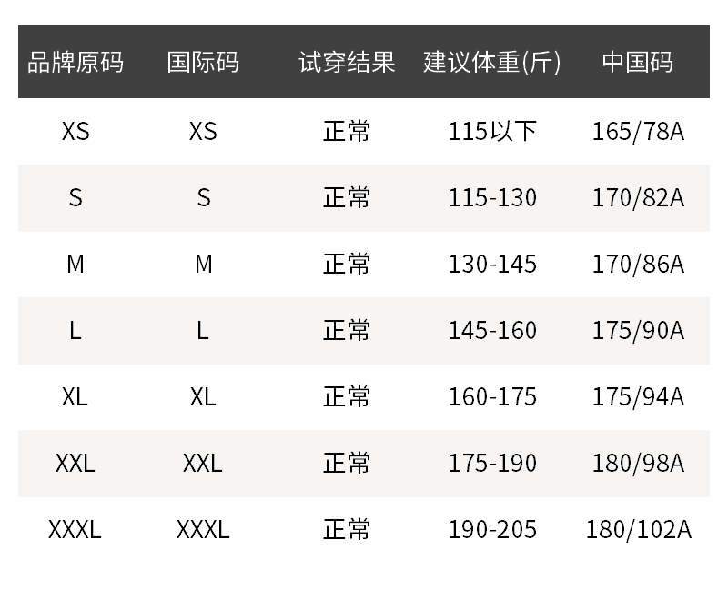 - 尺码说明