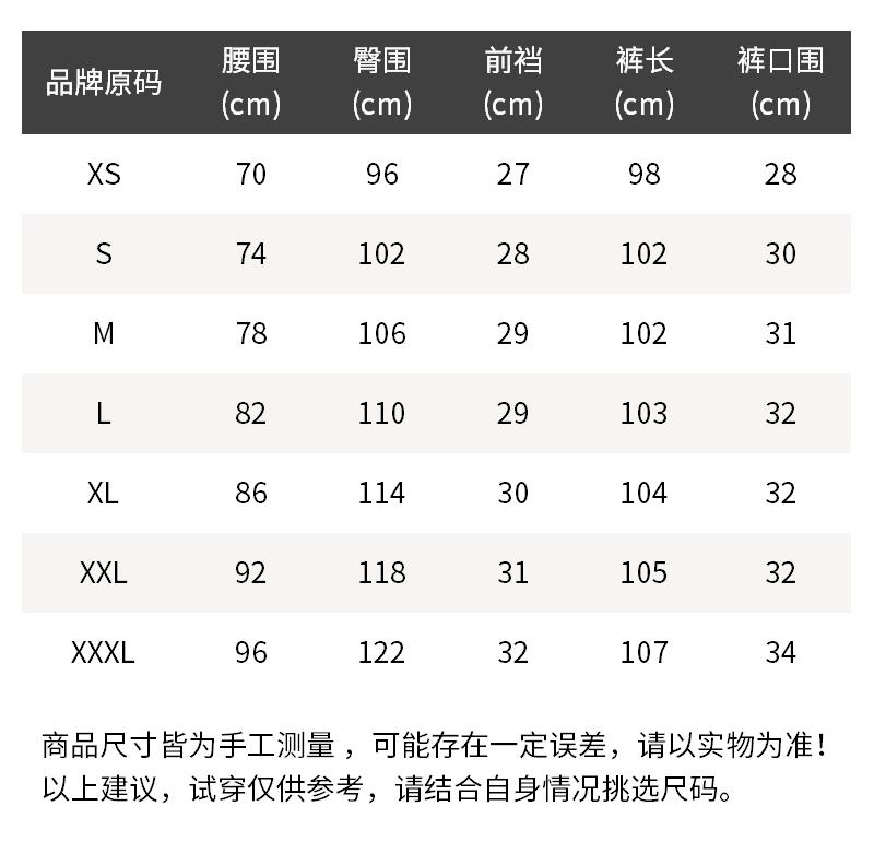- 结构:腰部有松紧、带抽绳,前片2个口袋,后面1个拉链口袋