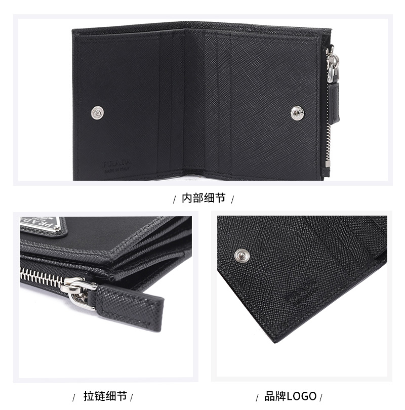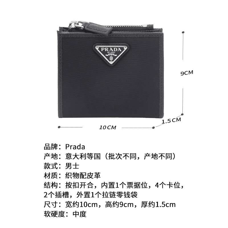自营Prada 普拉达 新品 男包 男士黑色三角形徽标小号短款钱包钱夹 2ML049 2DMH F0002