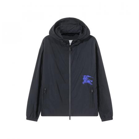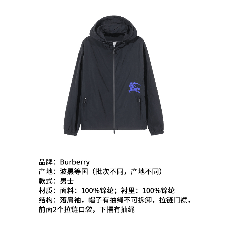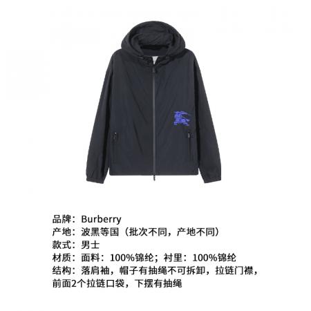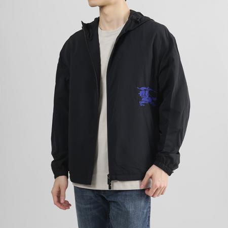 自营Burberry 博柏利 新品 男士黑色马术骑士徽标贴花宽松版连帽拉链休闲外套 80867141