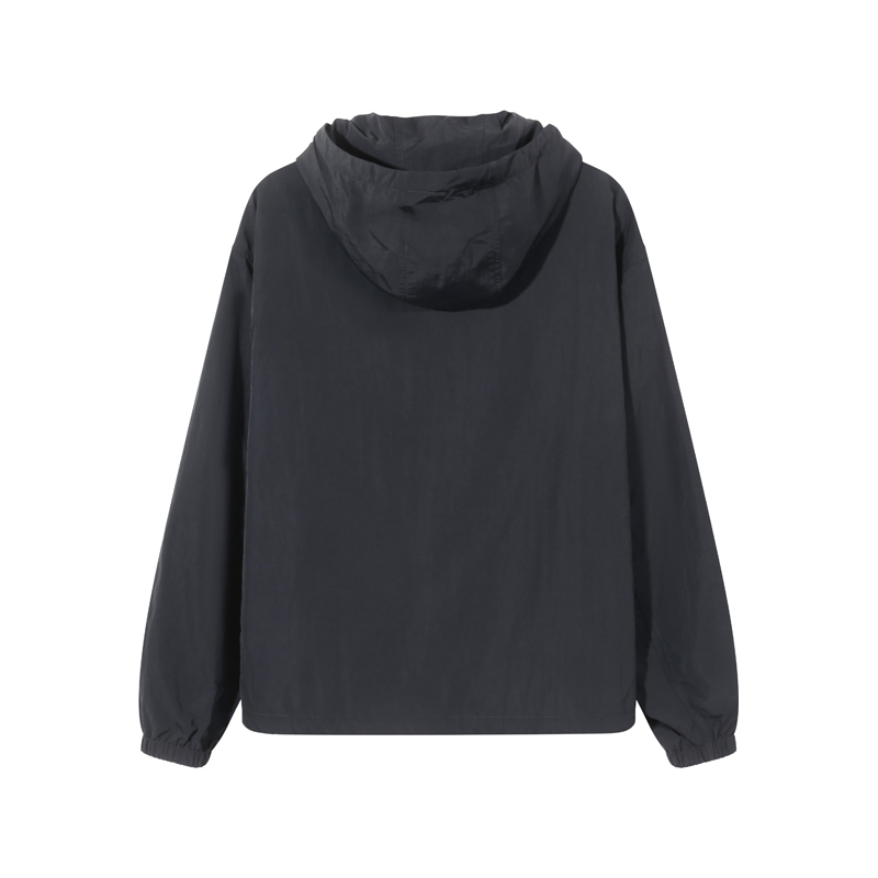 - 结构:落肩袖,帽子有抽绳不可拆卸,拉链门襟,前面2个拉链口袋,下摆有抽绳