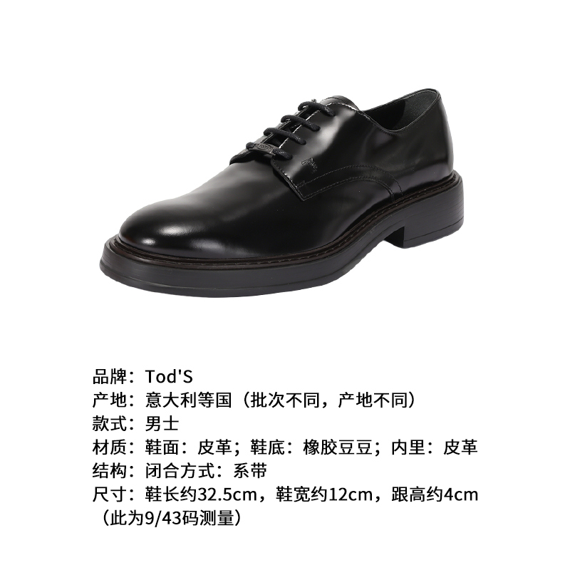 自营Tod'S 托德斯 新品 男士皮革黑色厚底系带德比鞋皮鞋单鞋 XXM61K00C21SOOB999