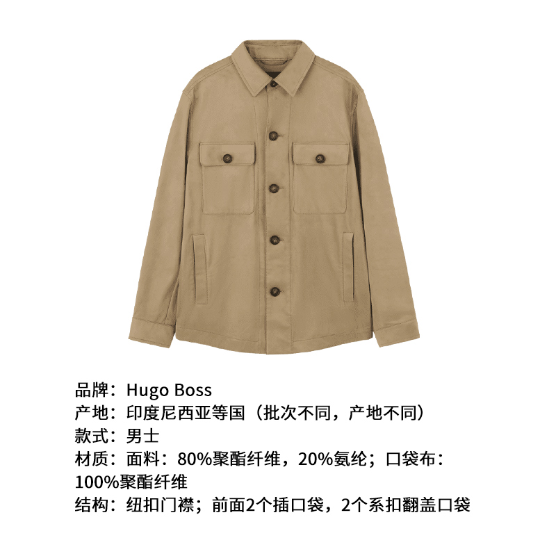 自营Hugo Boss 雨果博斯 25秋冬新品 男士black系列驼色衬衫式外套上衣 50544483 260