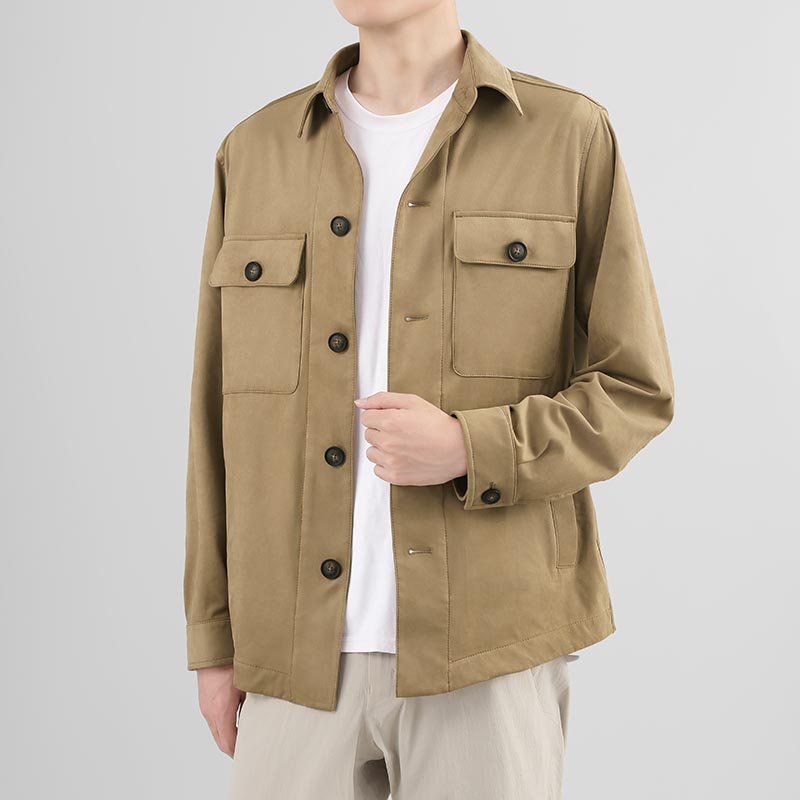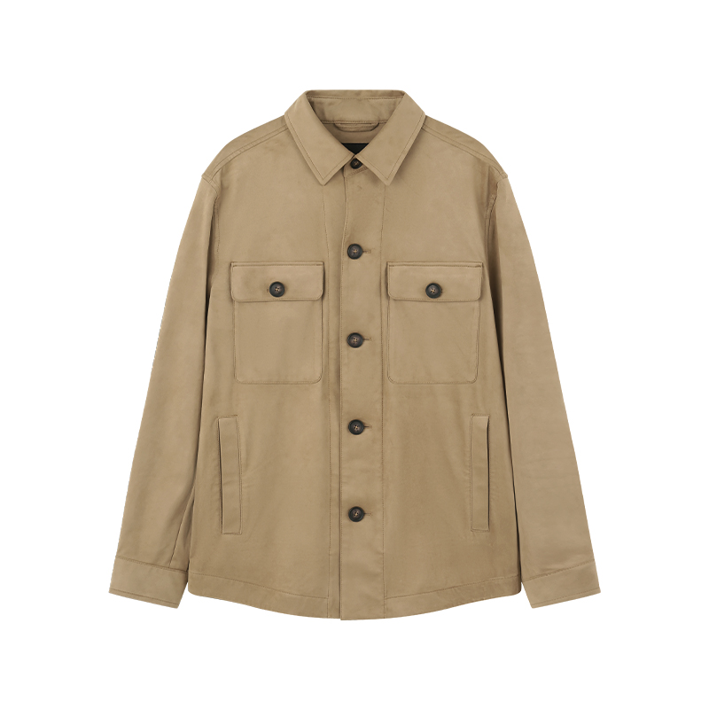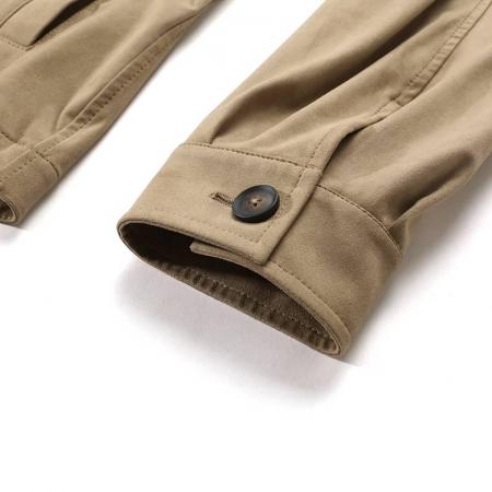 - 结构:纽扣门襟;前面2个插口袋,2个系扣翻盖口袋