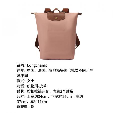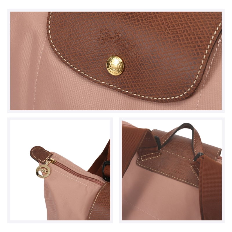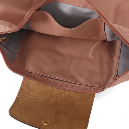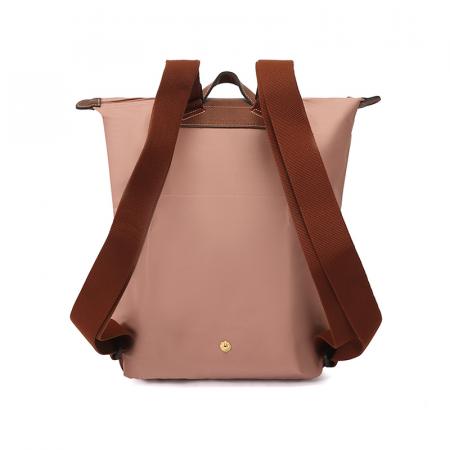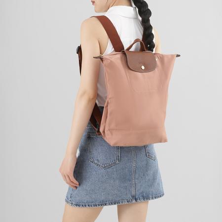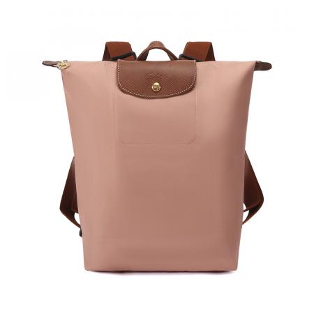 自营Longchamp 珑骧 新品 女包 女士Le Pliage Original系列织物/牛皮革茶粉色中号可折叠手提双肩背包 10284 089 P96
