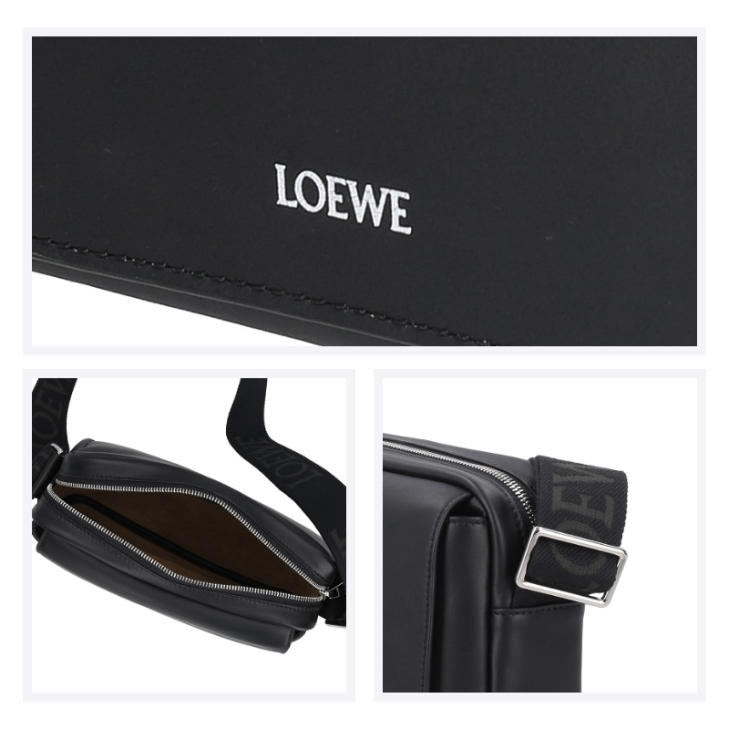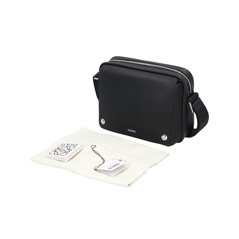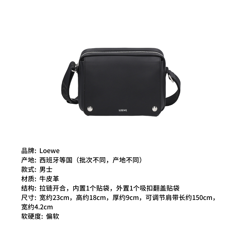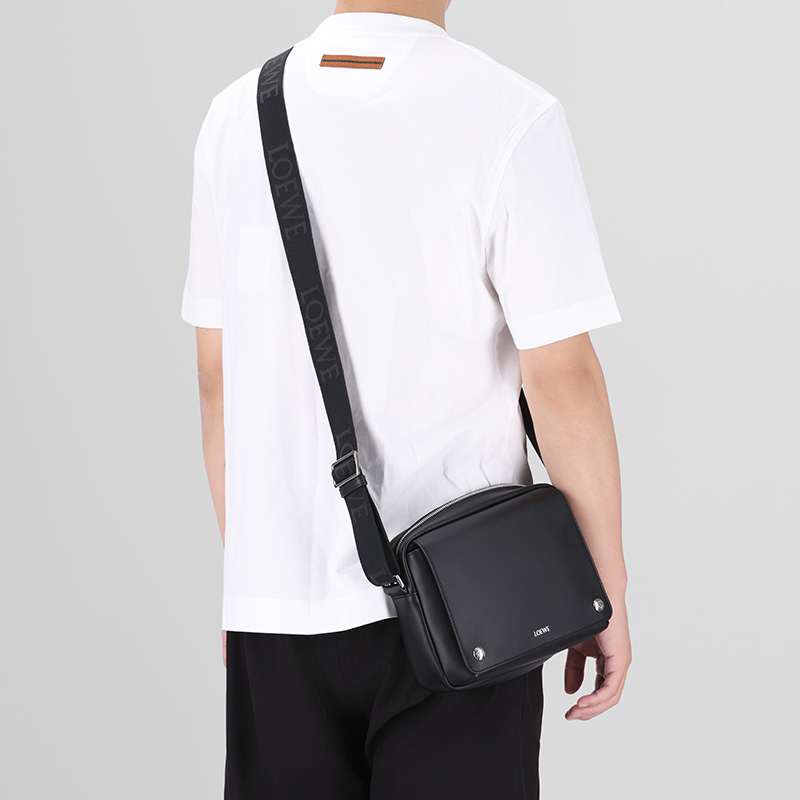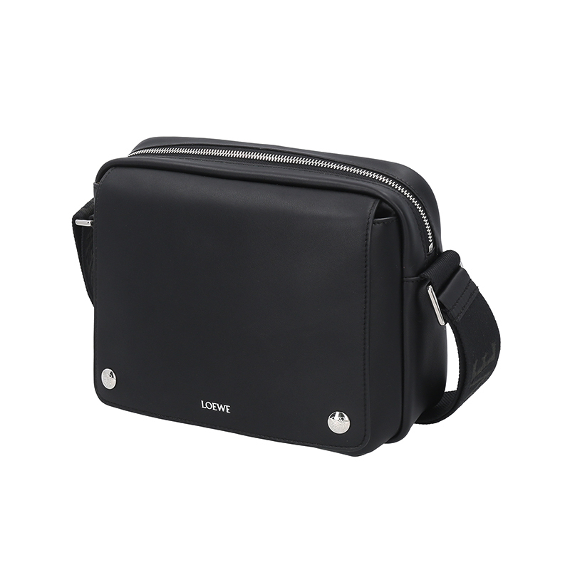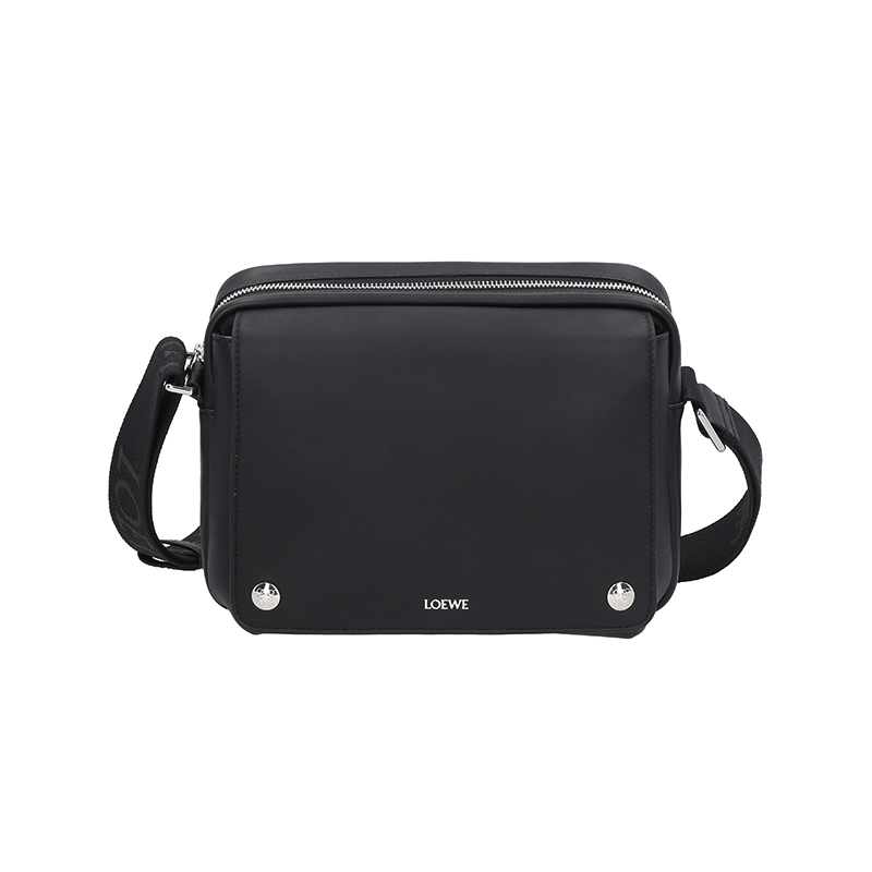 自营Loewe 罗意威 新品 男包 男士牛皮革黑色中号Pebble邮差包单肩斜挎包 BANBA73X03 1100