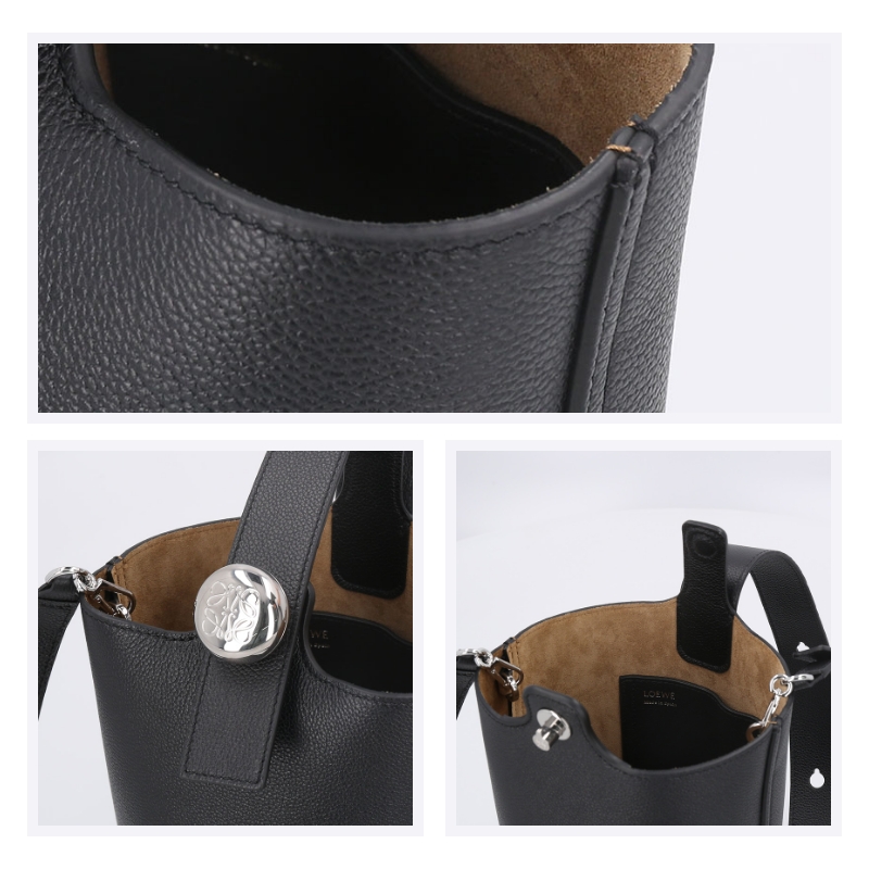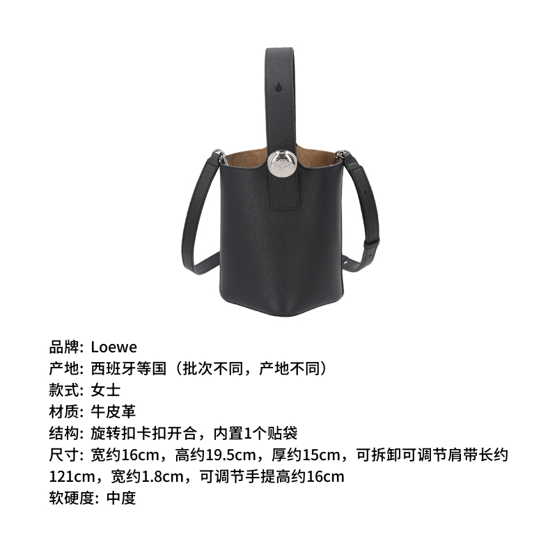 自营Loewe 罗意威 新品 女包 女士牛皮革黑色Pebble Bucket水桶包手提单肩斜挎包 AANBBBMX31 1100