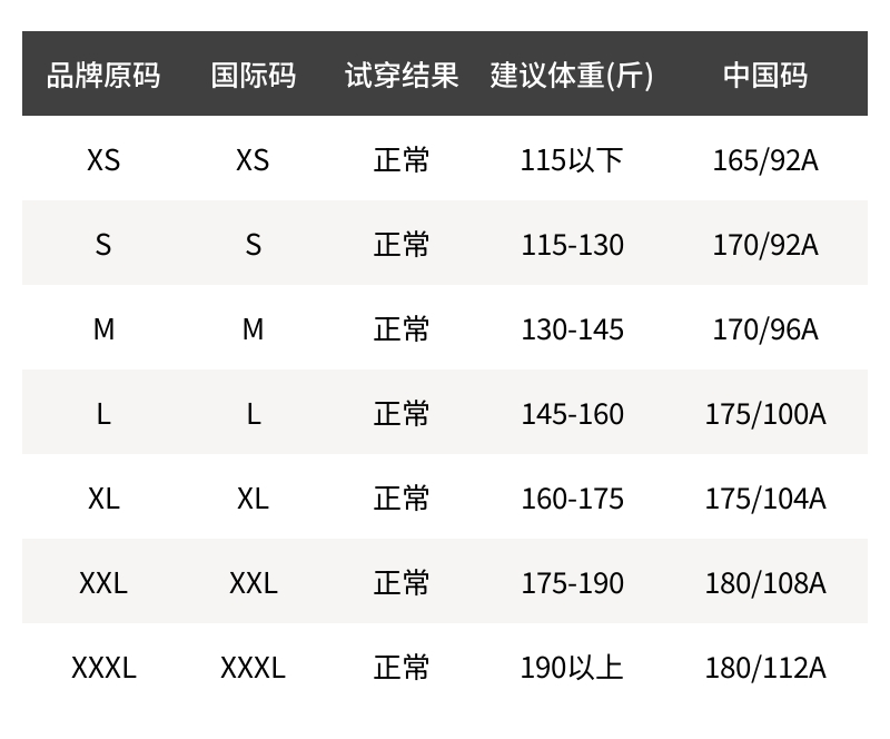 - 尺码说明