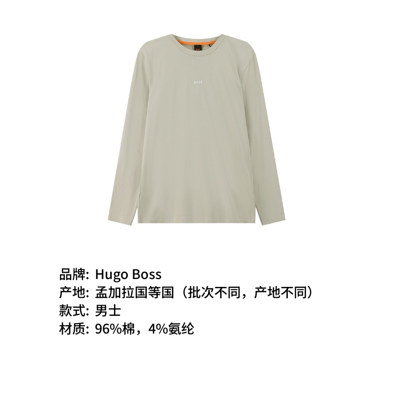 自营Hugo Boss 雨果博斯 25秋冬新品 男士orange系列棉质米色小徽标胶印圆领长袖T恤 50473286 271