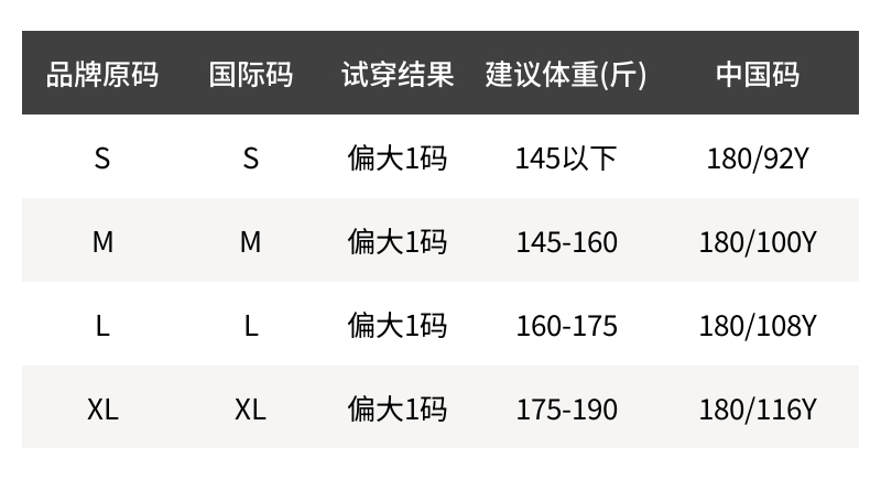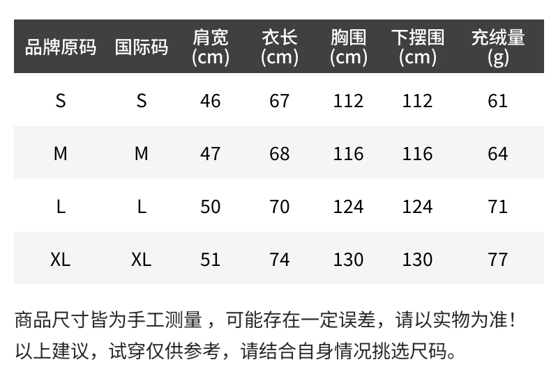 - 尺码说明
