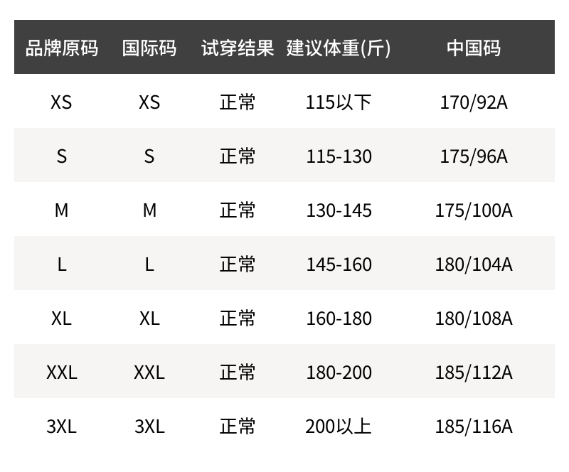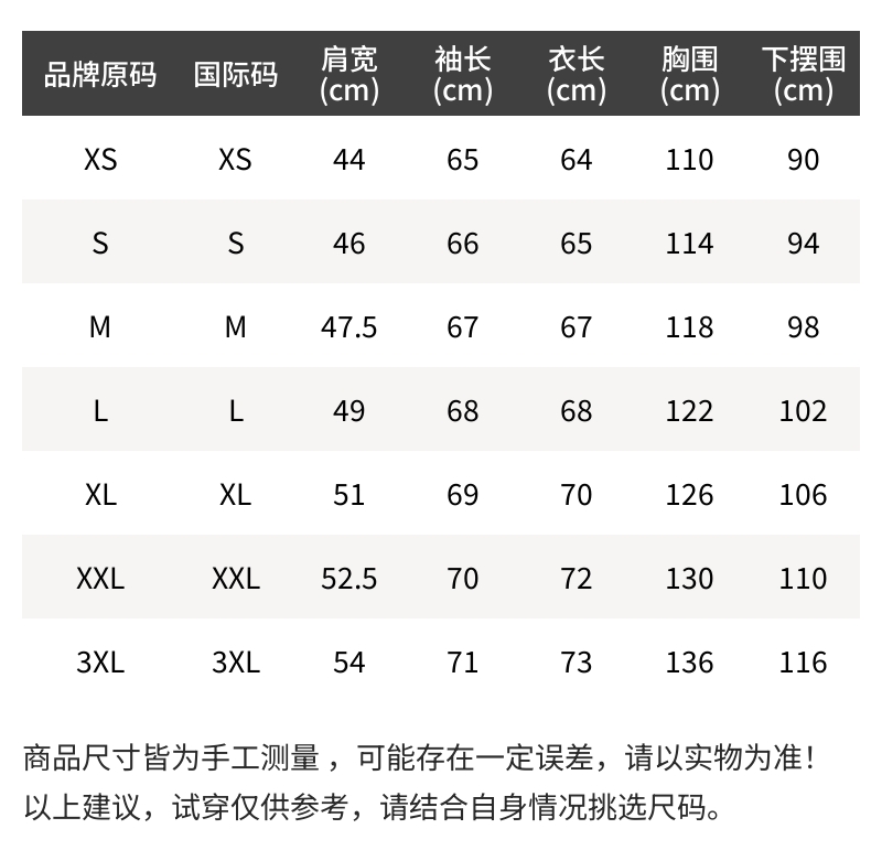 - 尺码说明
