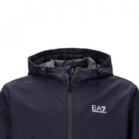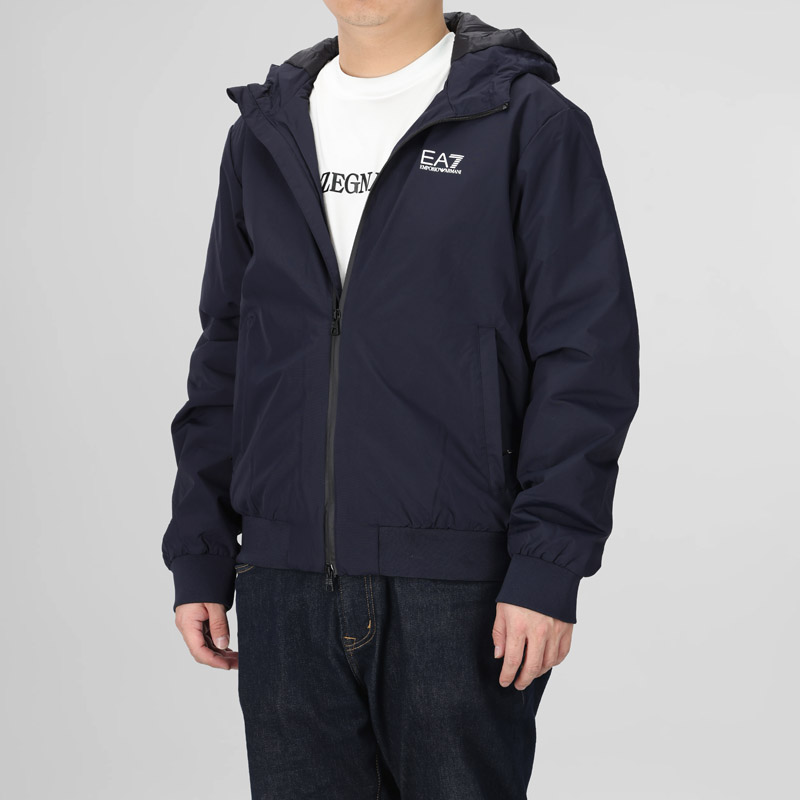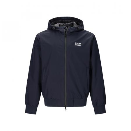 自营EA7 阿玛尼 新品 男士海军蓝色标识印花短款连帽拉链加绒夹克休闲开衫上衣外套 8NPB21 PNFZZ 1562